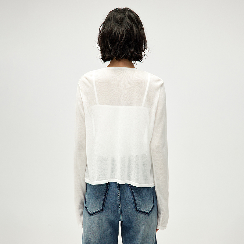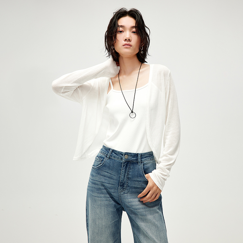 HLA/海澜之家微弹轻薄针织开衫2025春夏季新款天丝空调衫毛衣女装