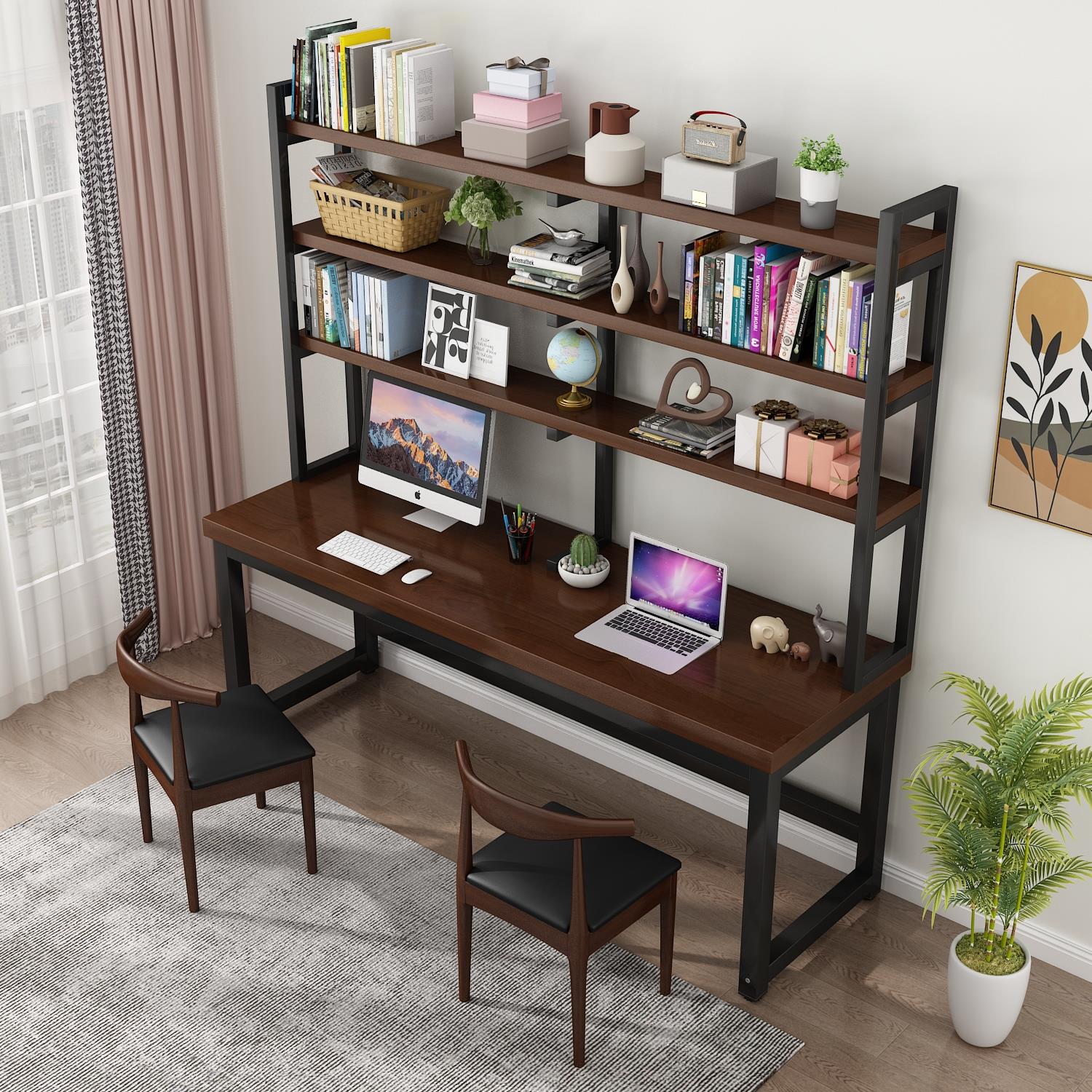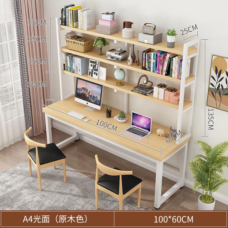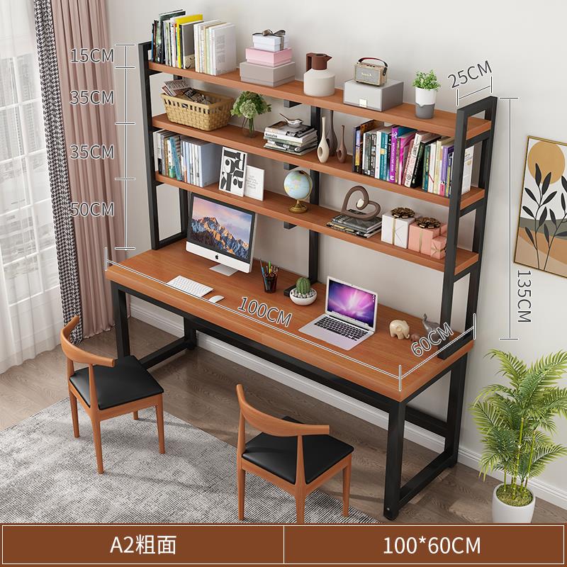 书桌书架一体组合双人学习桌实木台式电脑桌中学生实木写字桌家用
