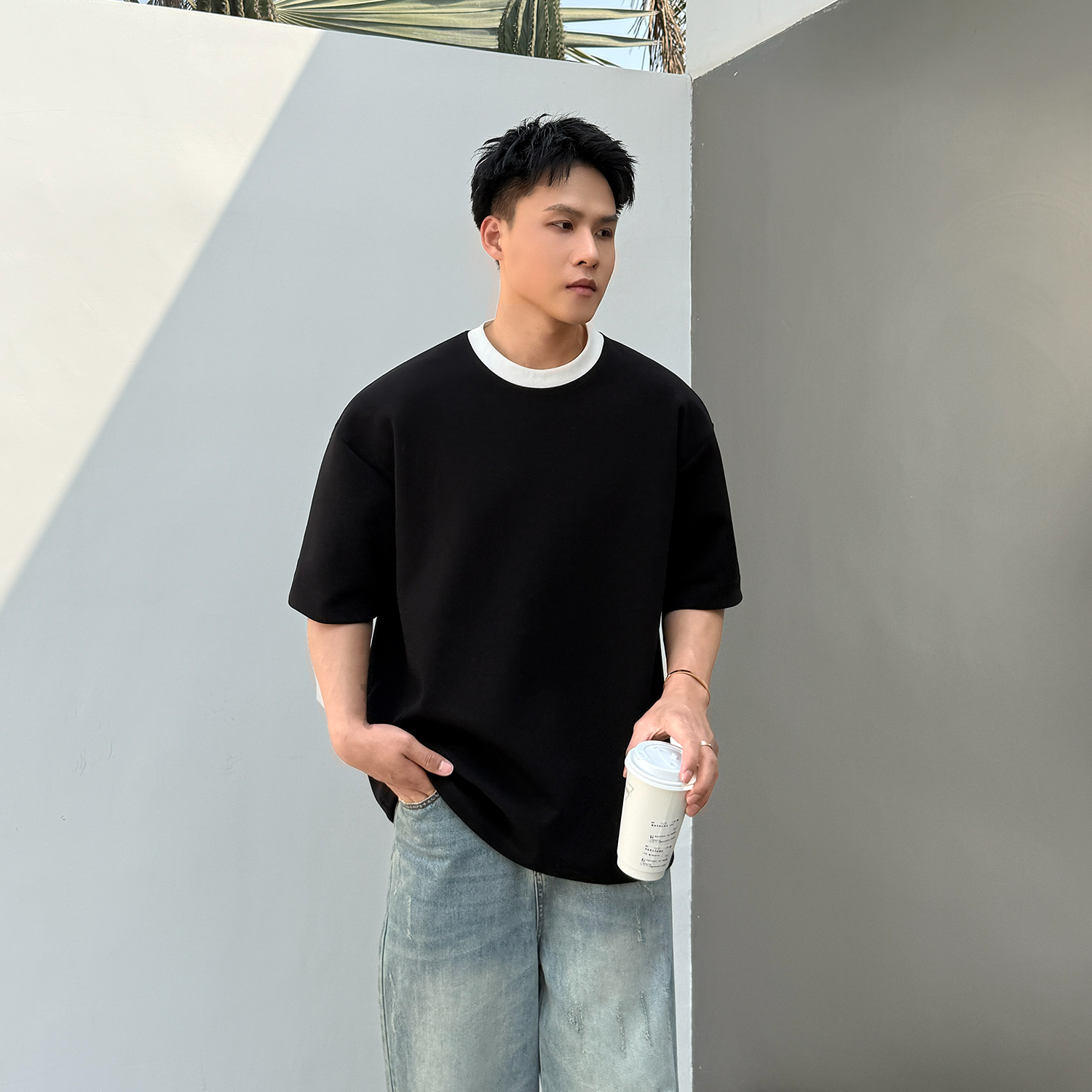 【假两件】重磅320g太空棉短袖男