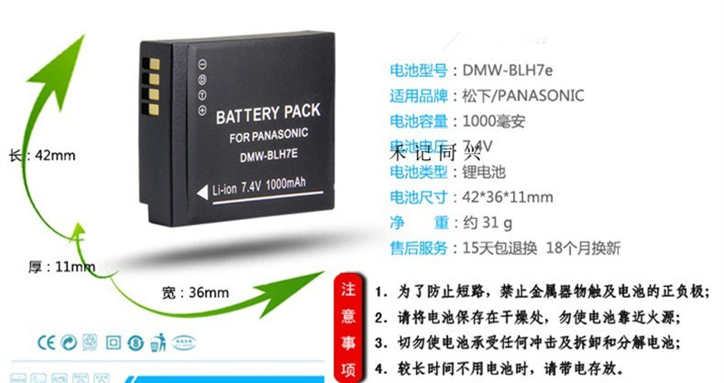 BLH7E电池 松下DMC-GM5 GF7 GF8 GF9 GF10 GM1 LX10 LX15微单相机