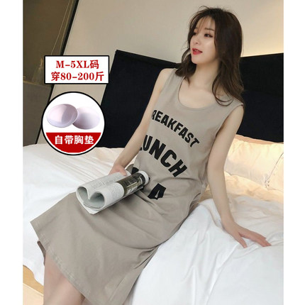 全棉睡裙女夏带胸垫背心吊带休闲