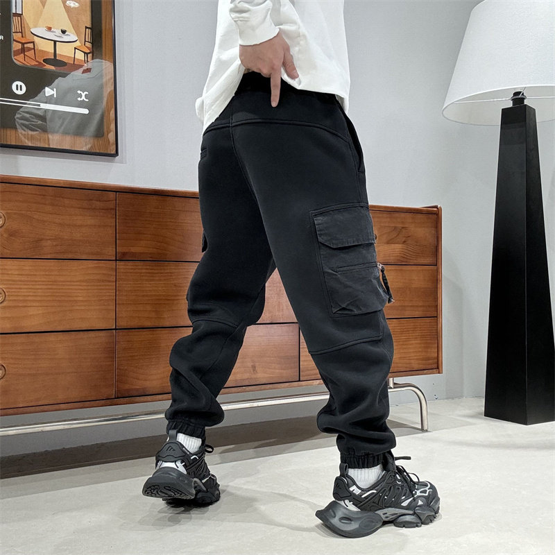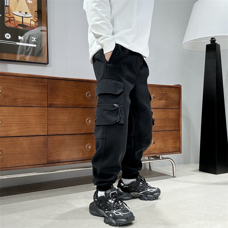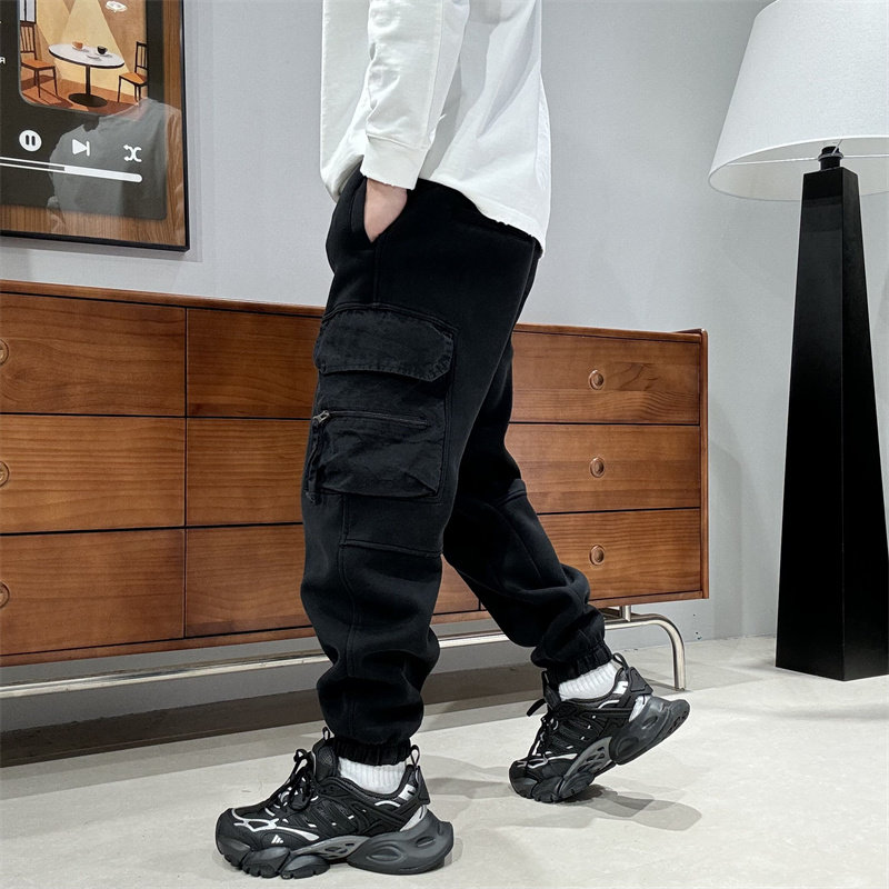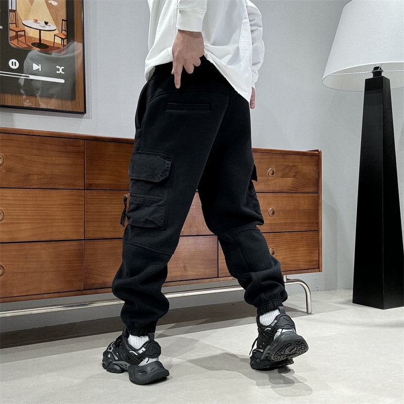 2026新款黑色大口袋工装裤男拼接设计束脚休闲裤时尚帅气百搭裤子