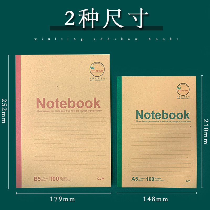 长江防近视笔记本牛皮纸本子a5软面抄日记本学生记事本B5大本子厚