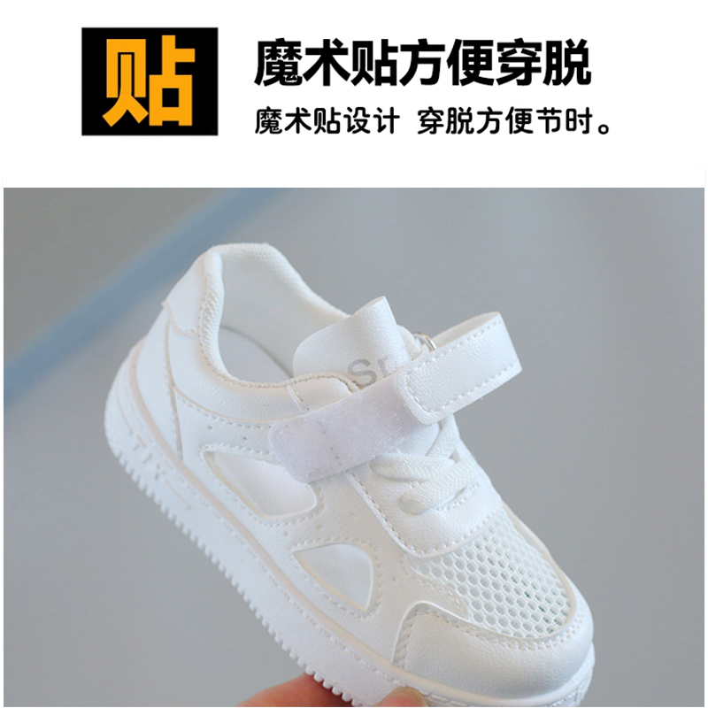儿童小白鞋2025新款男童幼儿园室内女童白色网面透气运动鞋子夏季