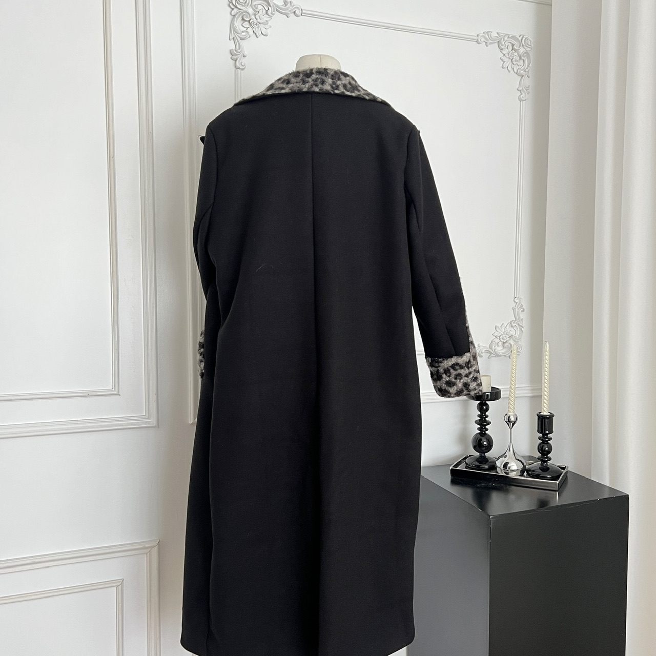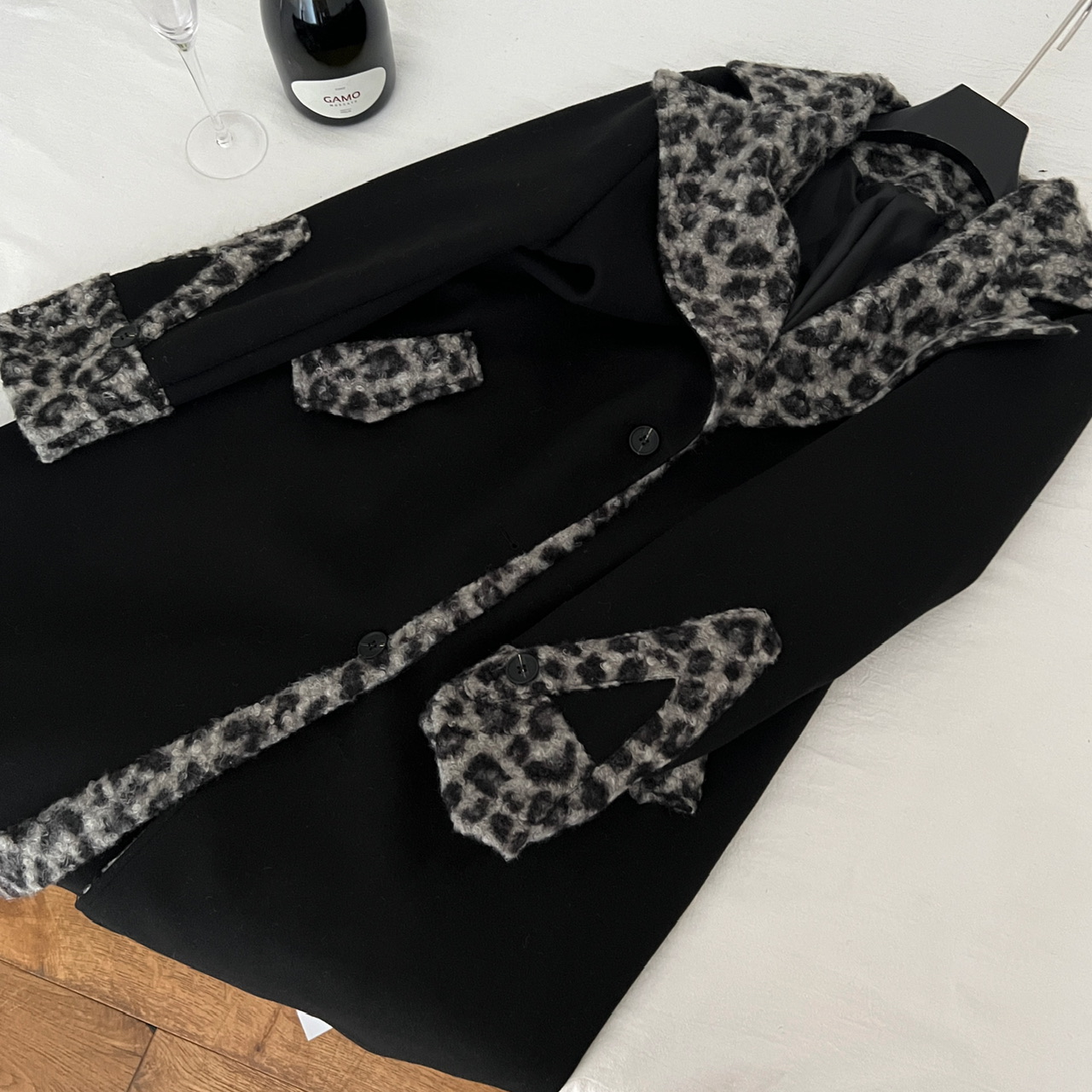 失落后花园原创高级感垫肩设计小众豹纹拼接立体廓形毛呢大衣外套