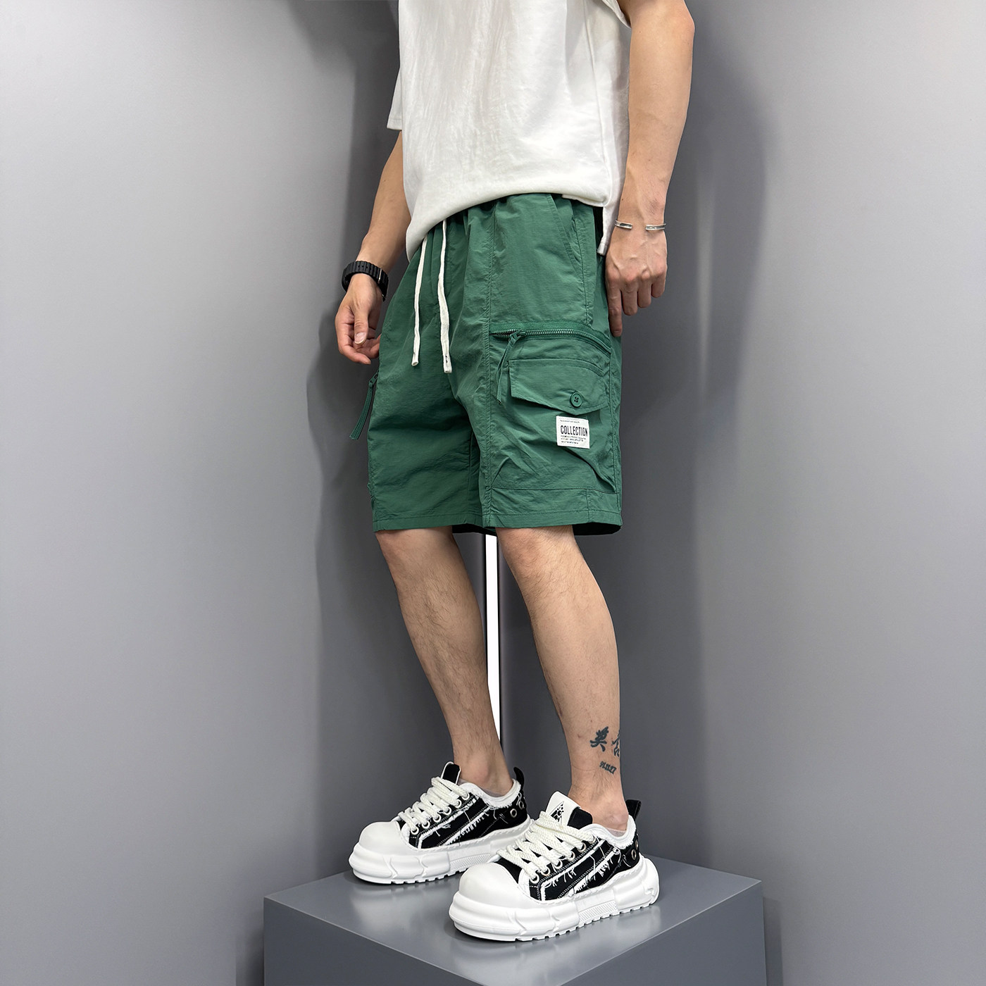 夏季男休闲拉链口袋短裤宽松工装大口袋沙滩裤冰丝速干凉感五分裤
