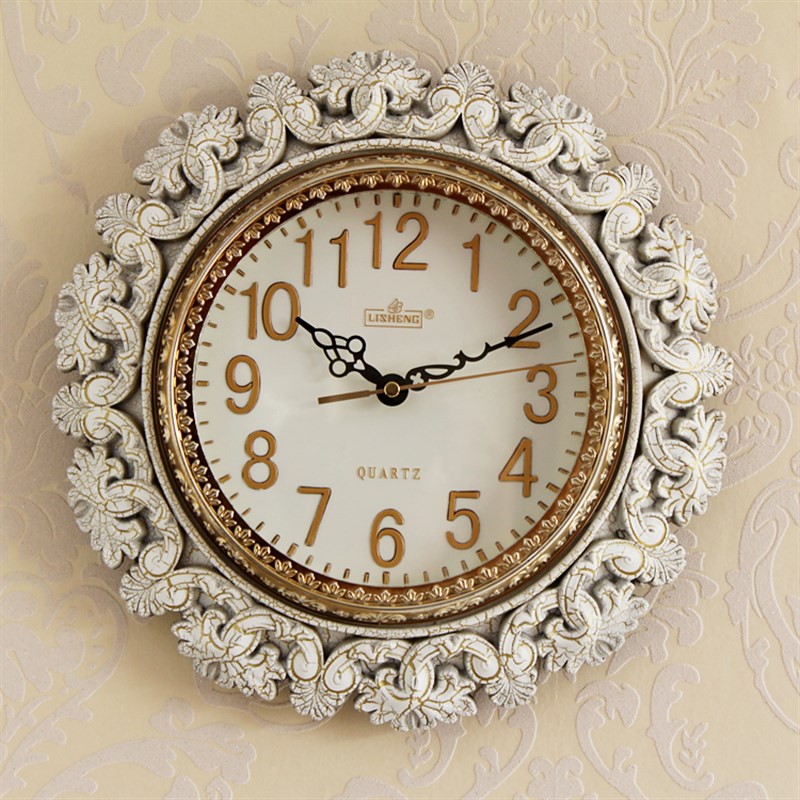 简约欧式复古钟表客厅创意现代挂钟家用卧室静音石英钟圆形时钟