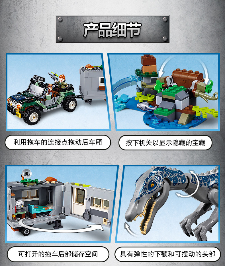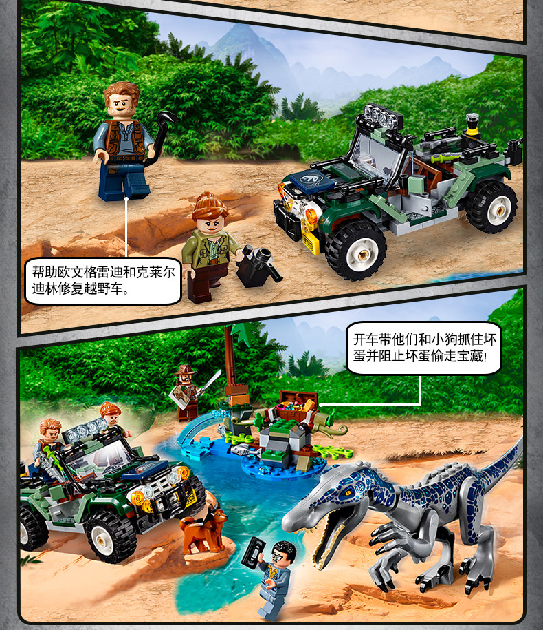 侏罗纪重爪龙之寻宝探险75935儿童拼装中国积木男孩玩具礼物11335