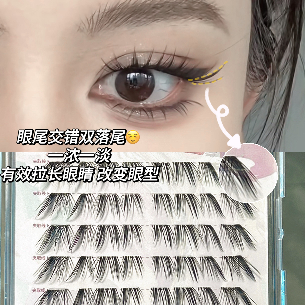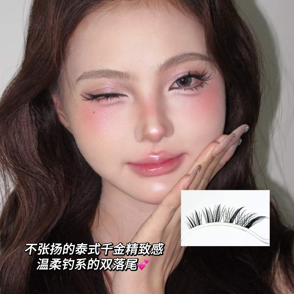 泰式千金落尾睫!免胶倒扣钓系浓密自然嫁接纯欲野生毛流假睫毛
