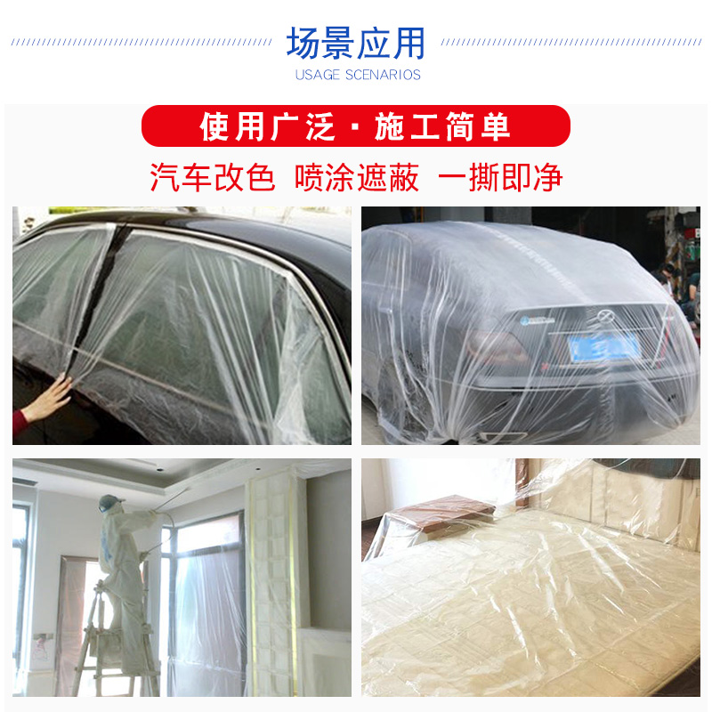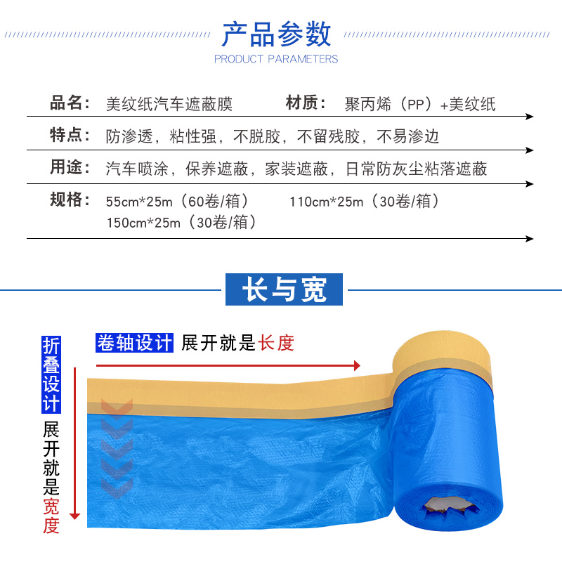 汽车喷漆美纹纸遮蔽保护膜不掉漆油漆喷涂专用防护蓝膜耐高温自粘