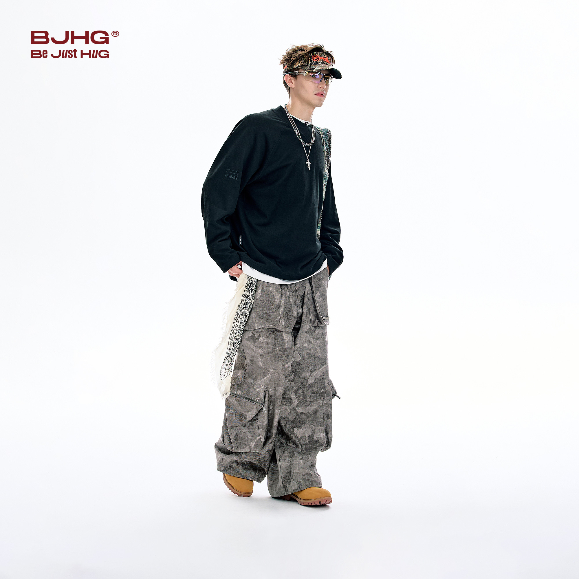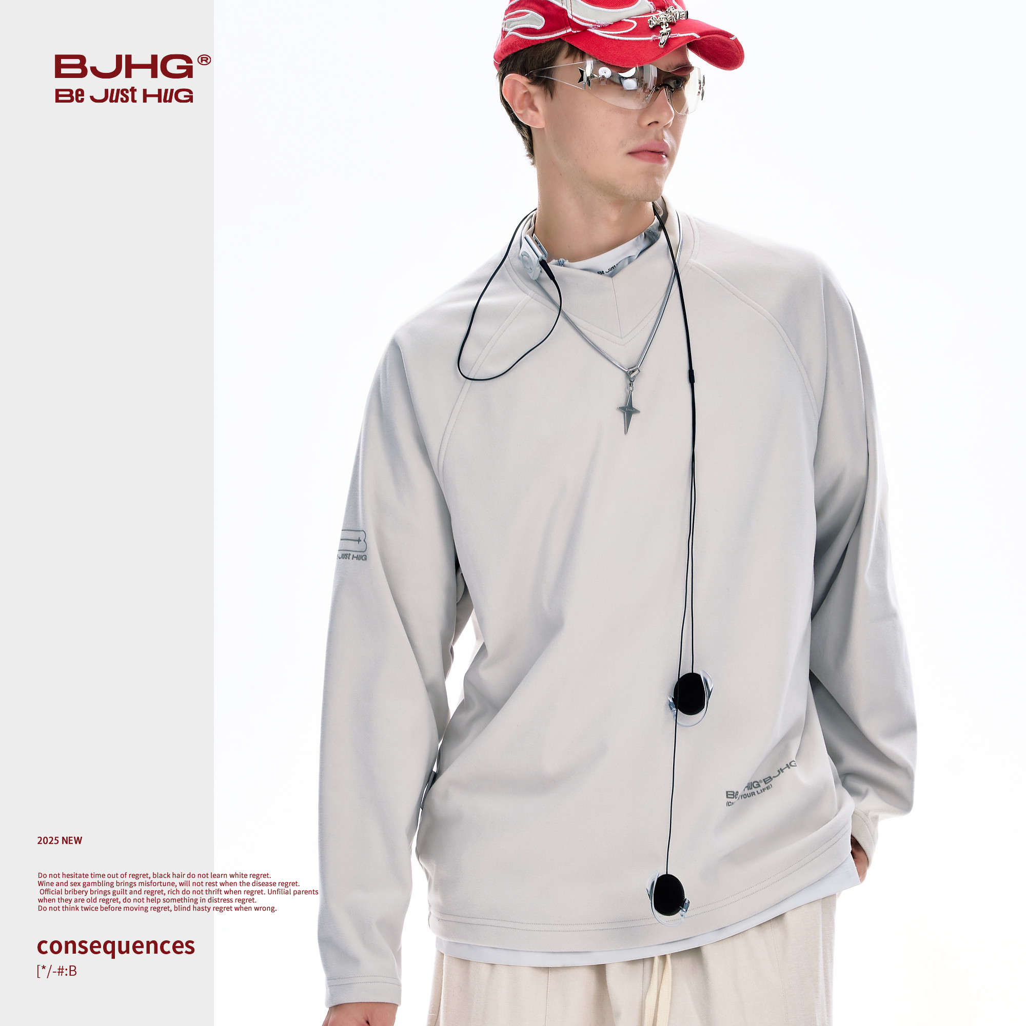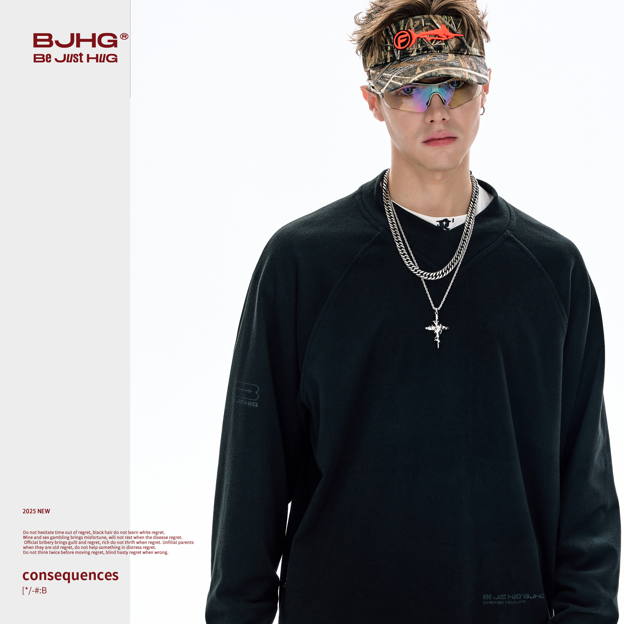 BJHG不计后果套头卫衣男款冬季潮V领长袖t恤宽松内搭加厚打底衫女