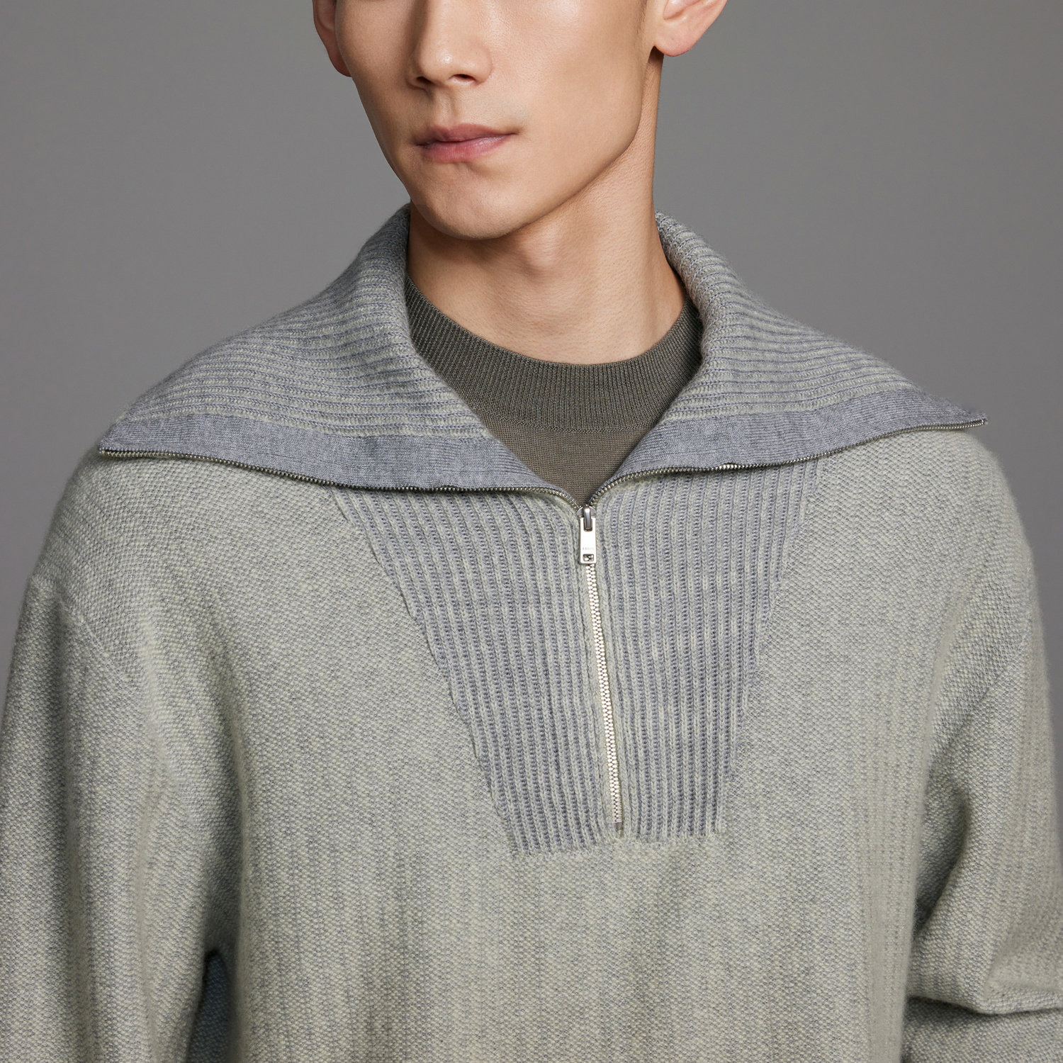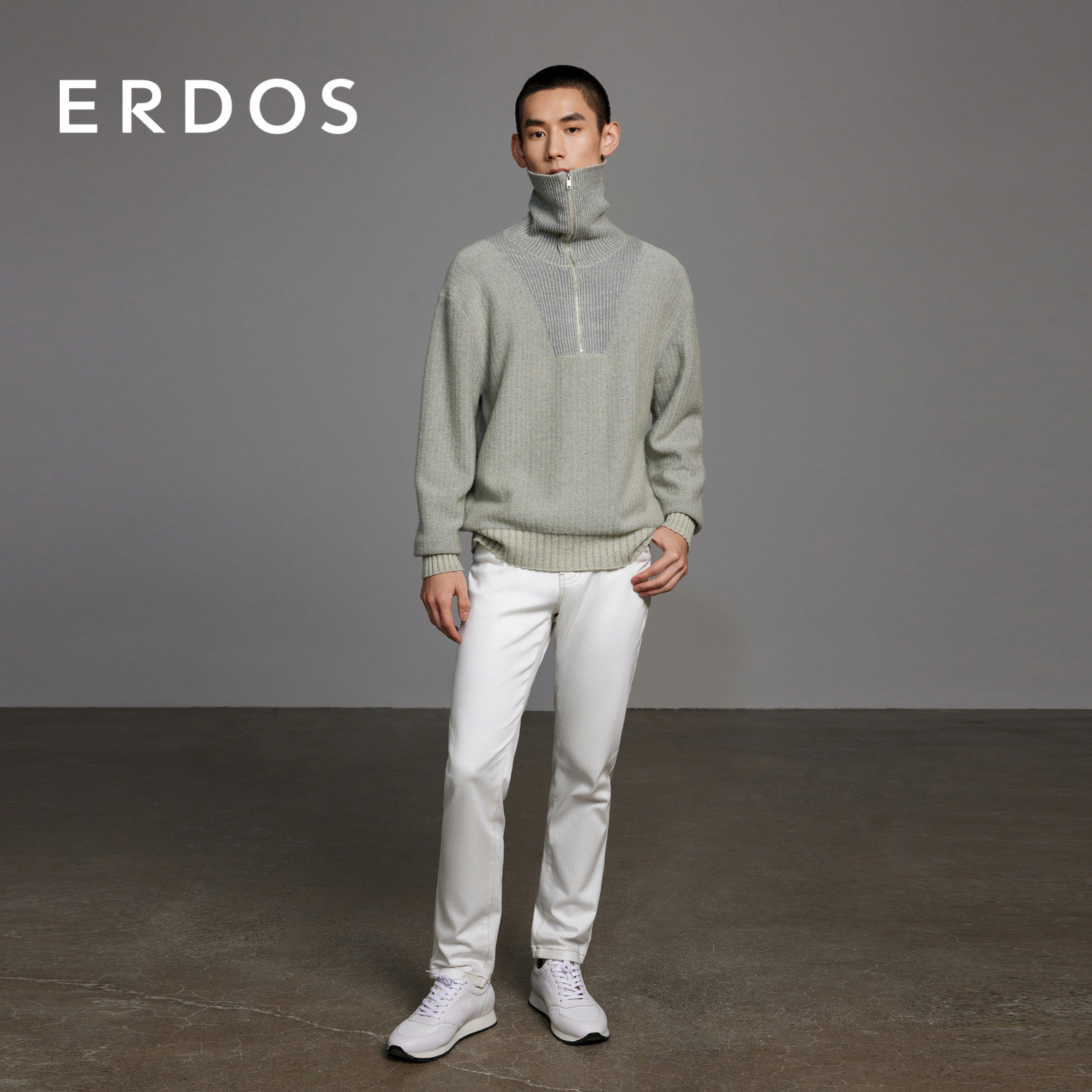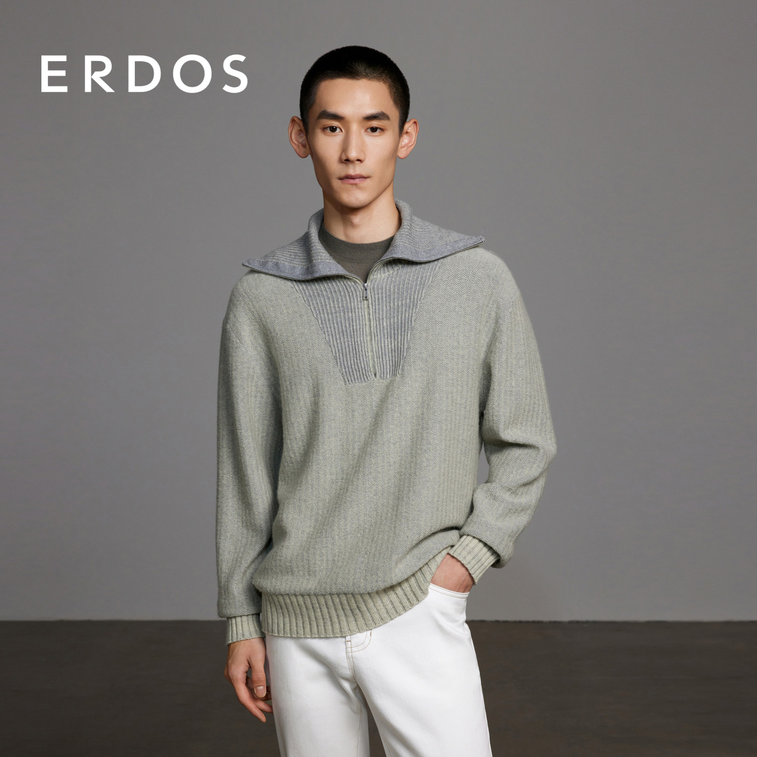 ERDOS 轻羊绒针织春季款男装羊绒羊毛混纺高领拉链海军领套衫