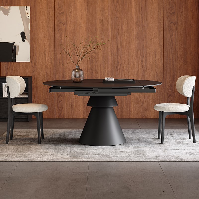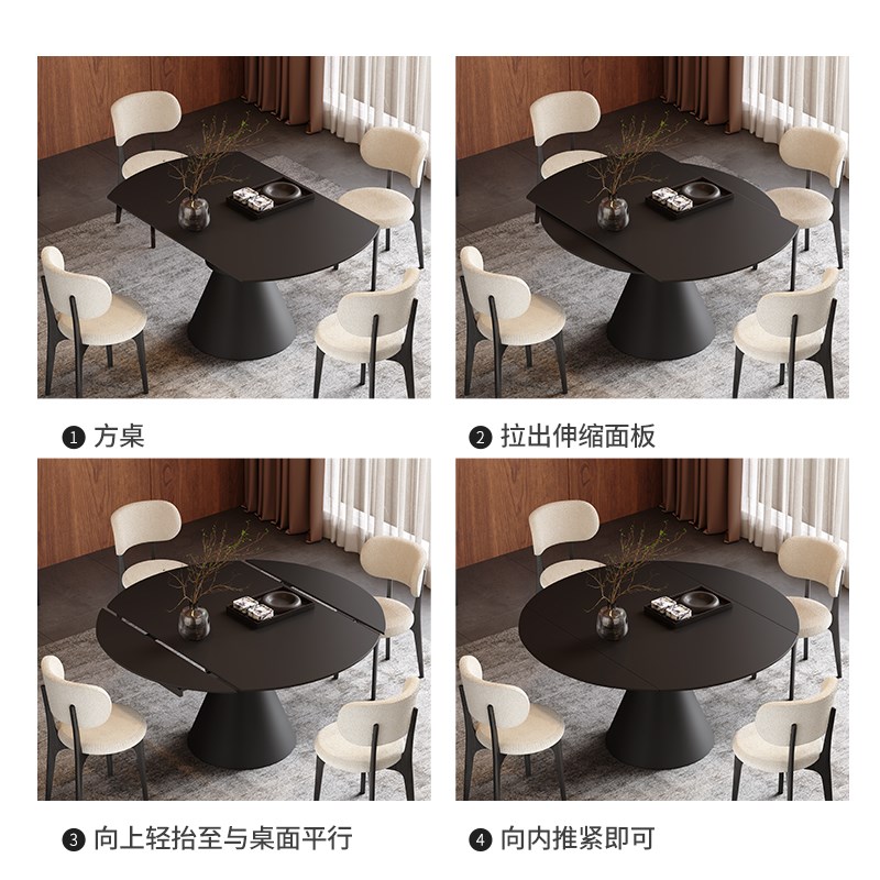 黑色岩板餐桌可变圆桌q家用小户型饭桌现代简约新款伸缩实木圆餐