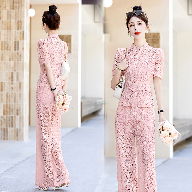 复古新中式两件套2025新款夏季时尚休闲气质显瘦蕾丝套装裤女上衣