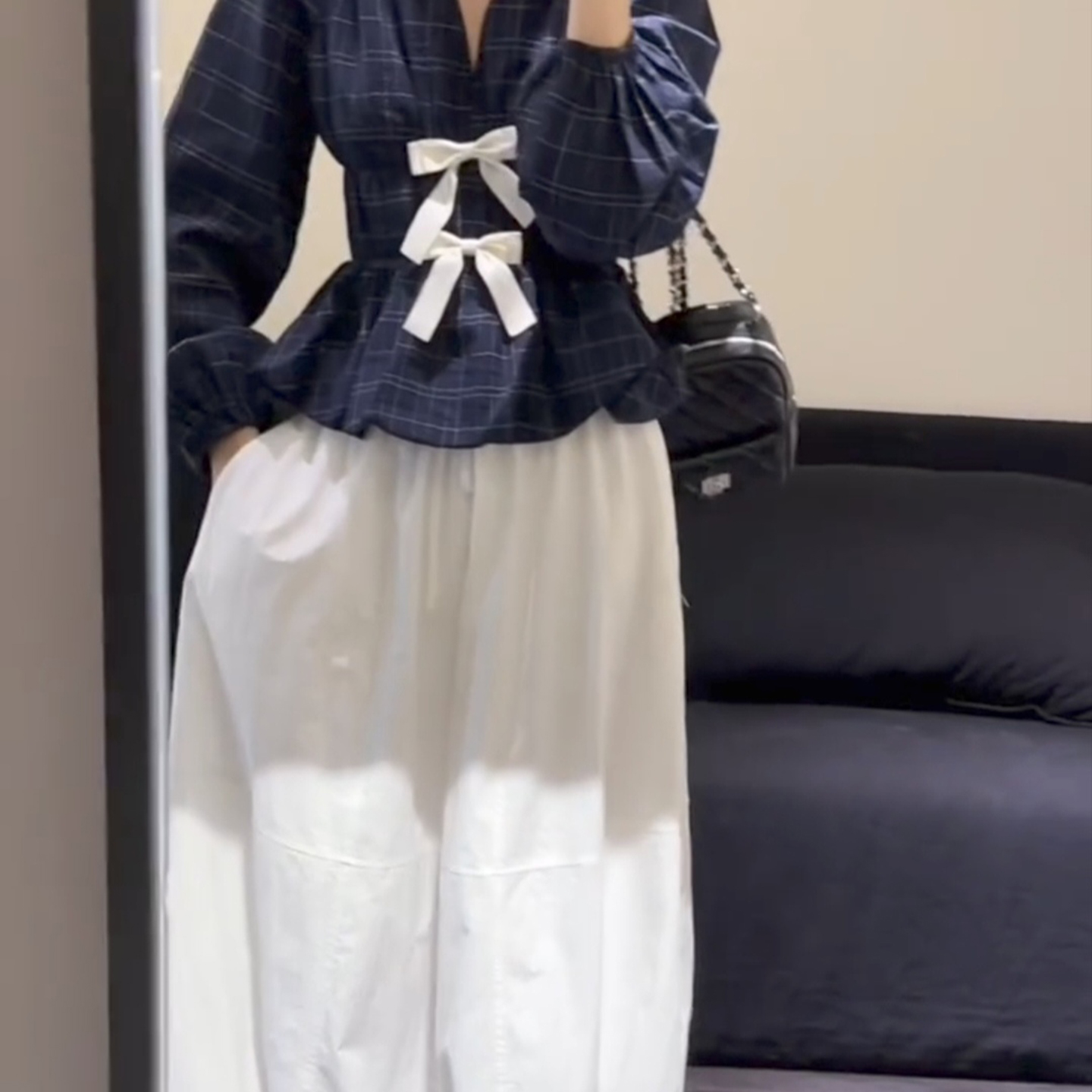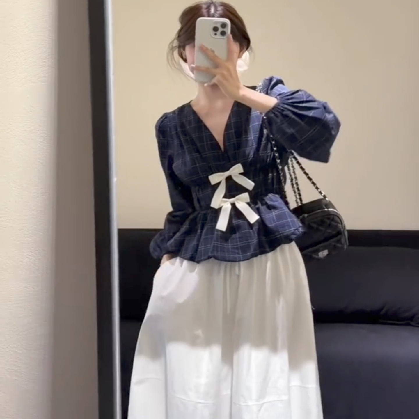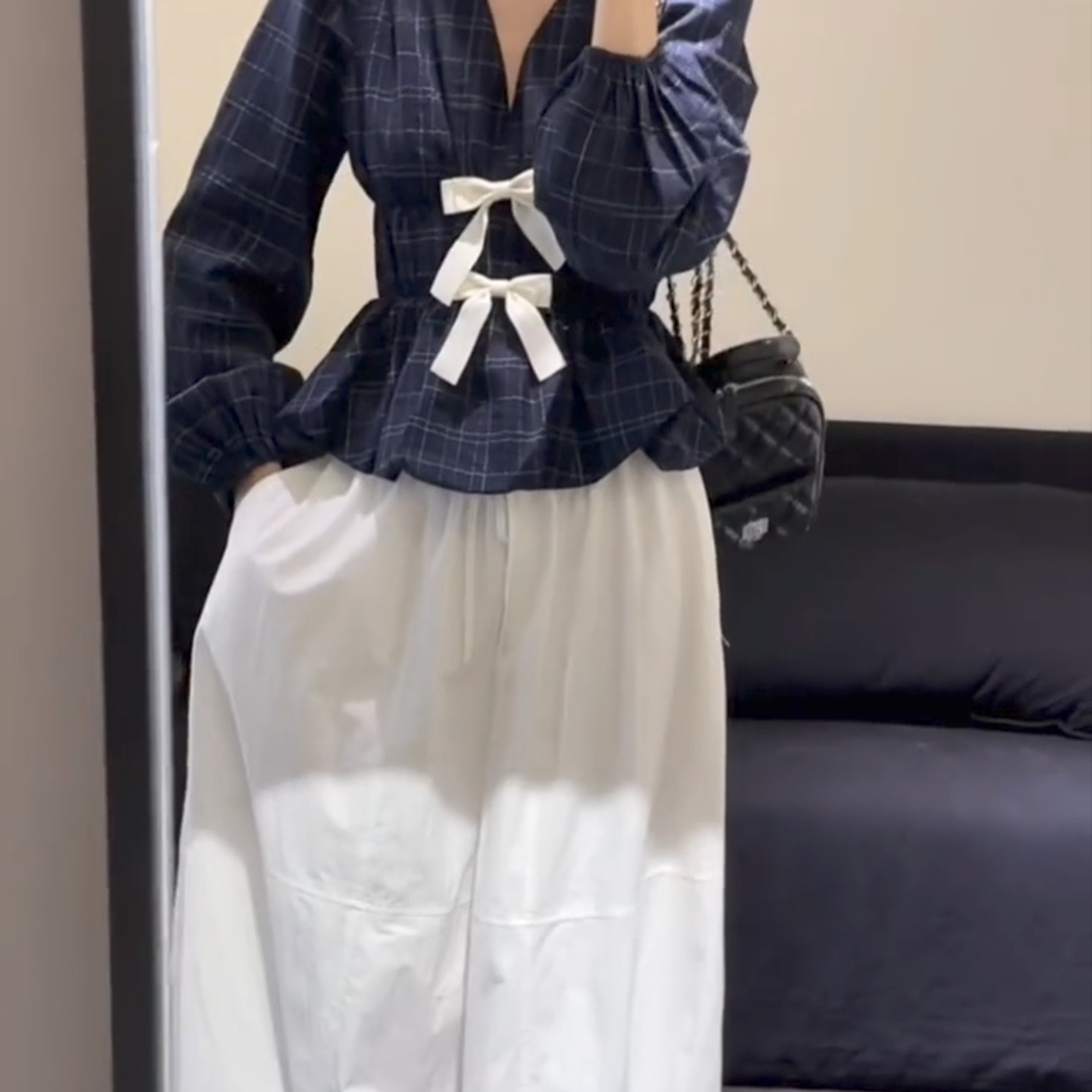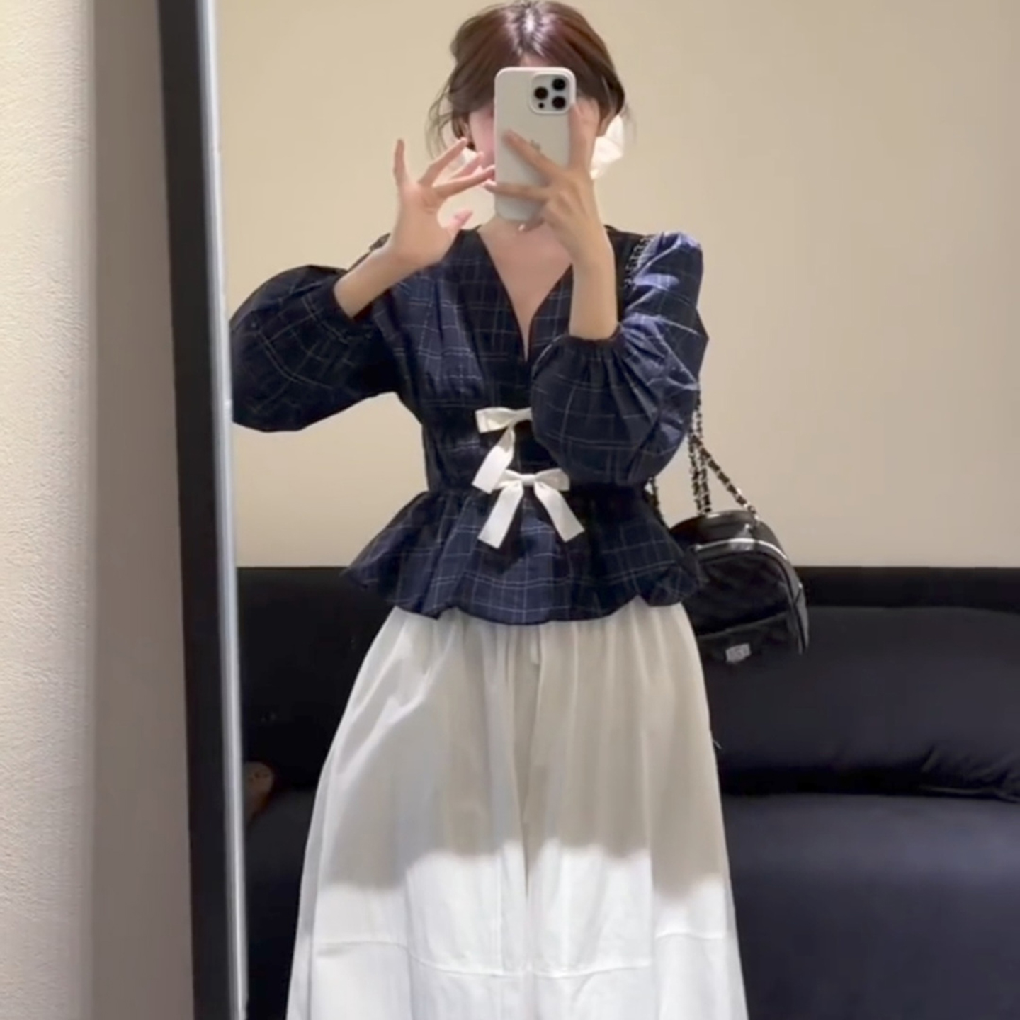 蝴蝶结衬衫套装连衣裙韩系氛围感