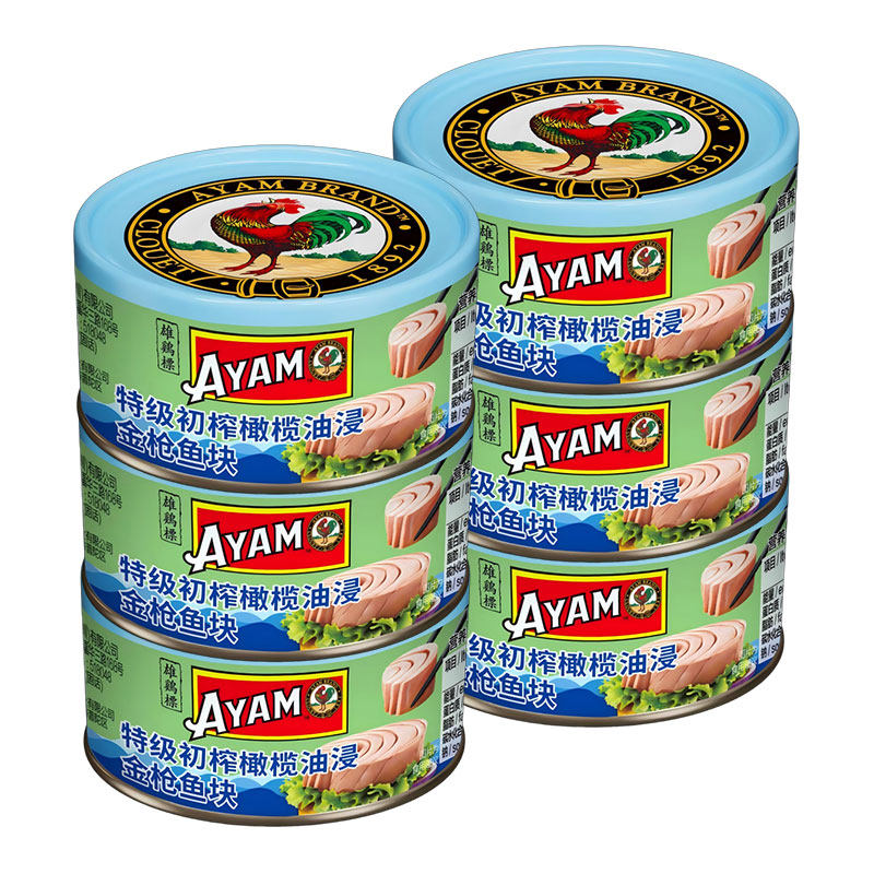 六罐雄鸡标橄榄油水浸金枪鱼罐头