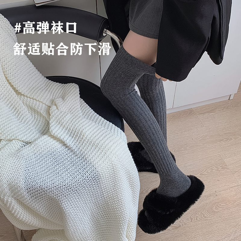 灰色长筒袜女秋冬过膝加厚保暖羊毛袜冬季大腿袜厚袜子过膝堆堆袜