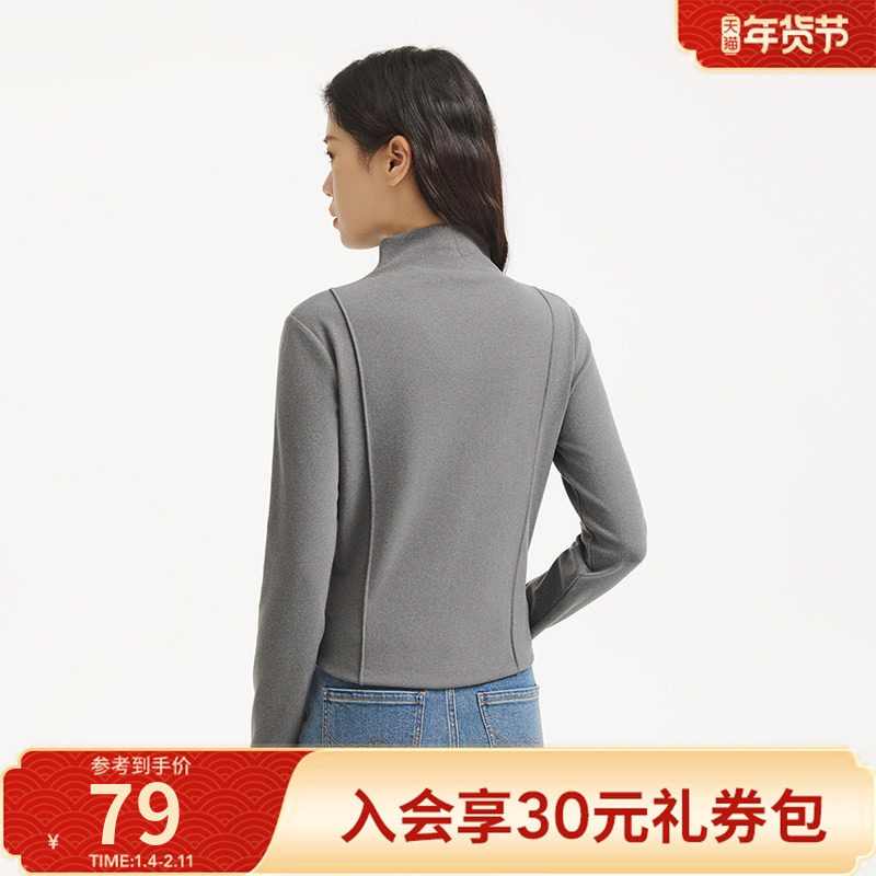 热风2025年冬季新款女士分割设计长袖T恤修饰身形基础百搭