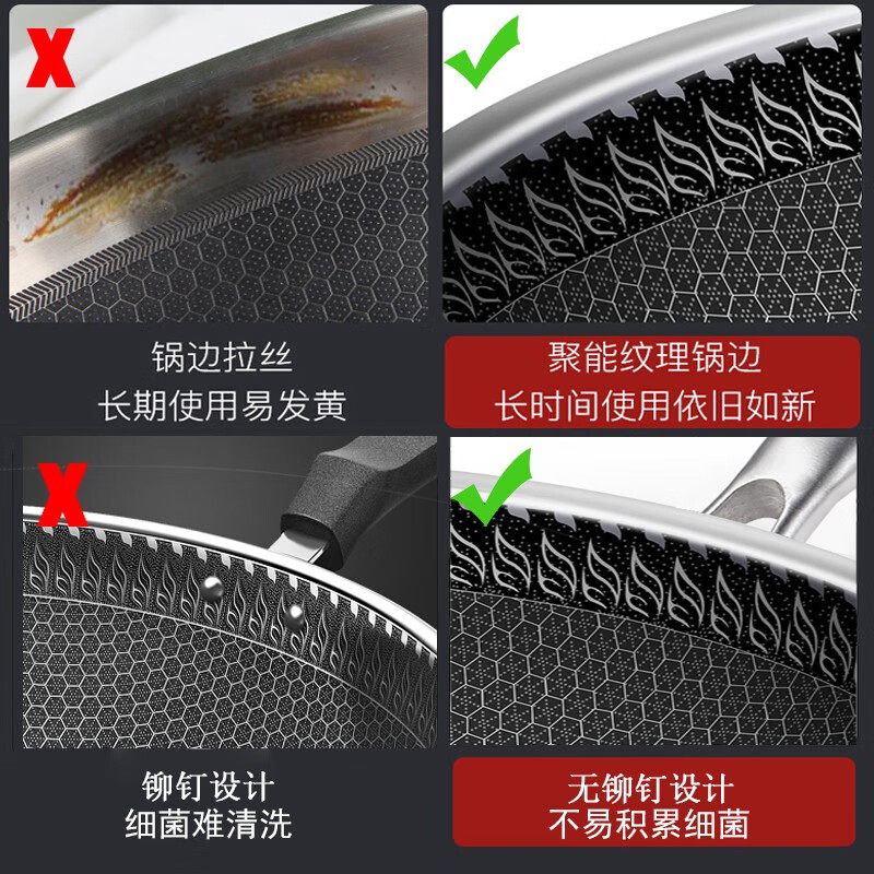 赫巴兹316不锈钢炒锅平底不粘锅家用燃气灶适用电磁炉专用炒菜锅