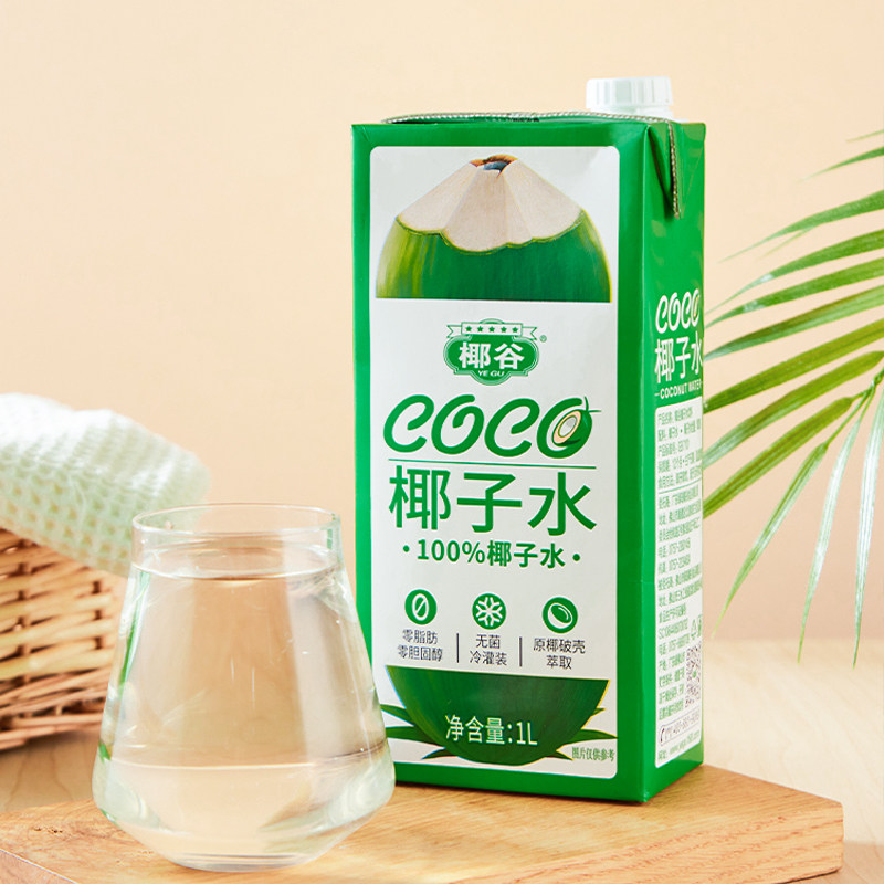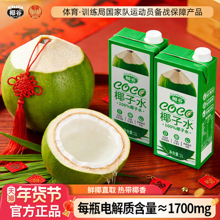椰谷椰子水1L*2盒纯果汁健康孕妇补水含天然电解质椰青水饮品盒装