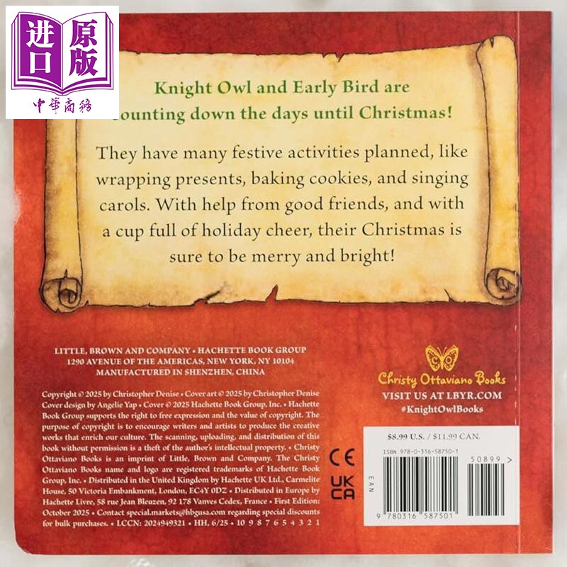 骑士猫头鹰的小圣诞 Knight Owl's Little Christmas 英文原版 儿童纸板书绘本 图画故事书 进口童书 3-7岁【中商原版】
