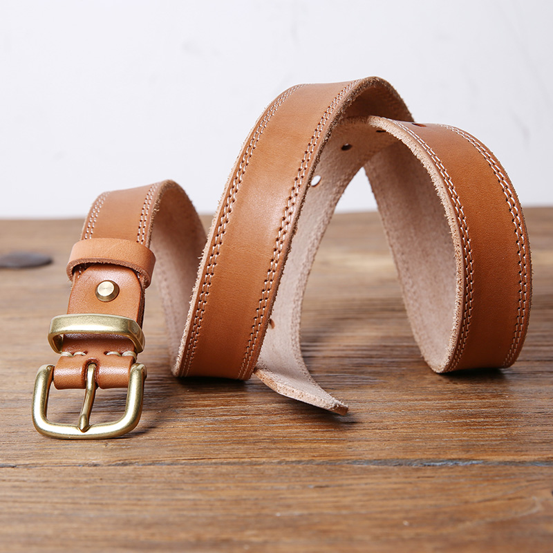 JUUZ LAN皮带女真皮针扣头层牛皮手工休闲百搭铜扣裤带软腰带细款