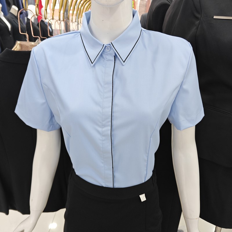 商务短袖衬衫女灰色新款方领长袖白衬衣职业气质工装正装工作服薄