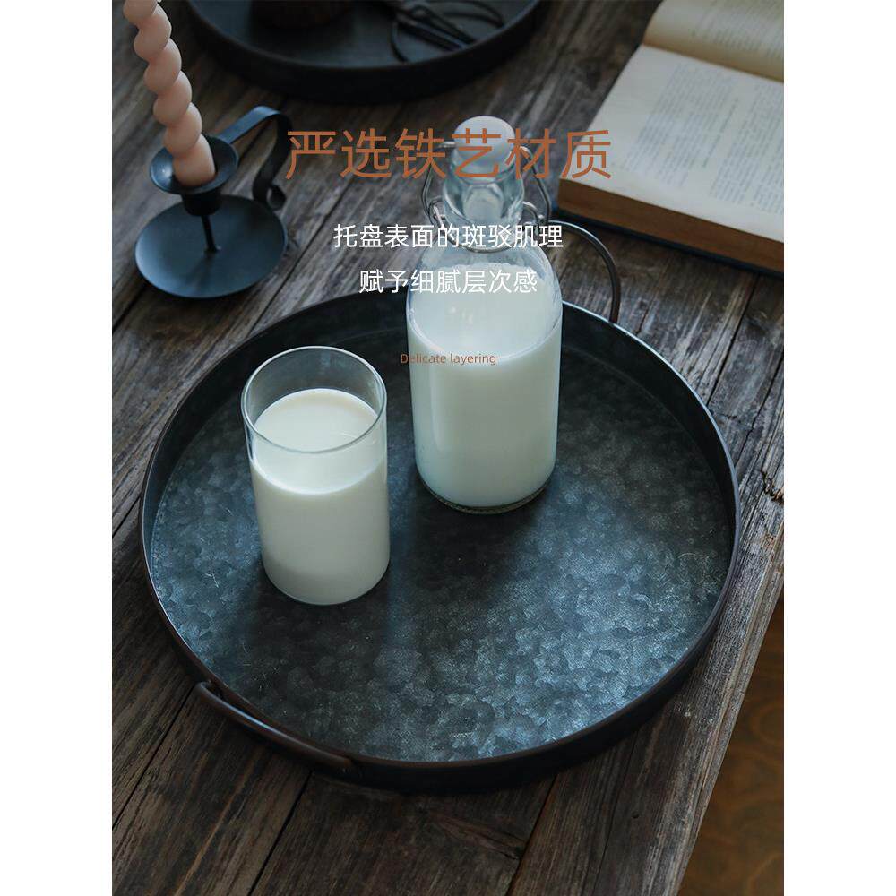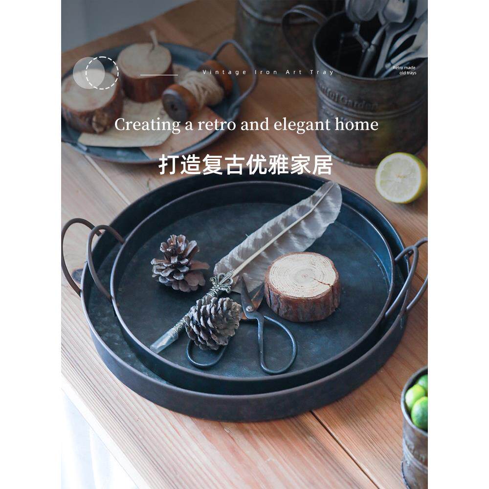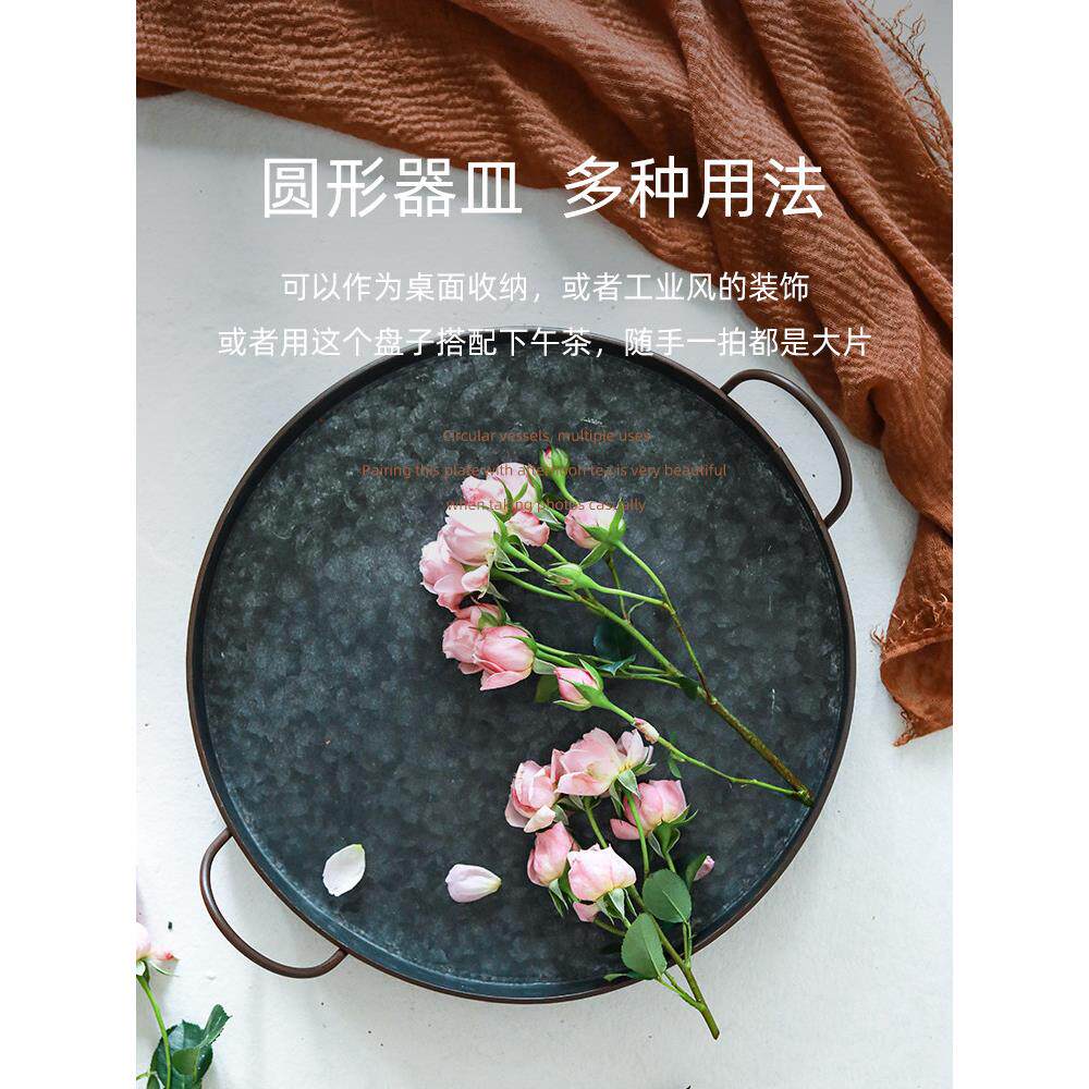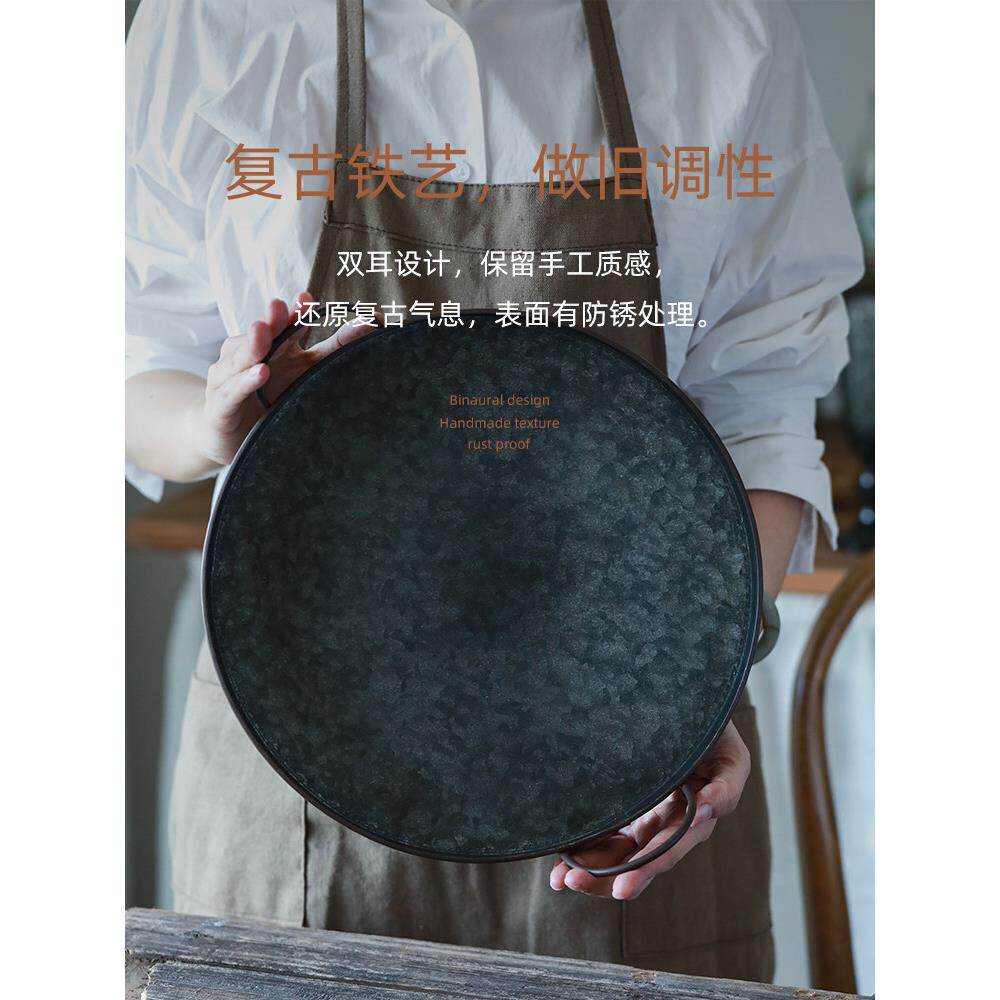 覆古个性化家居旧调铁圆双耳托盘欧式水果盘美食盘安置