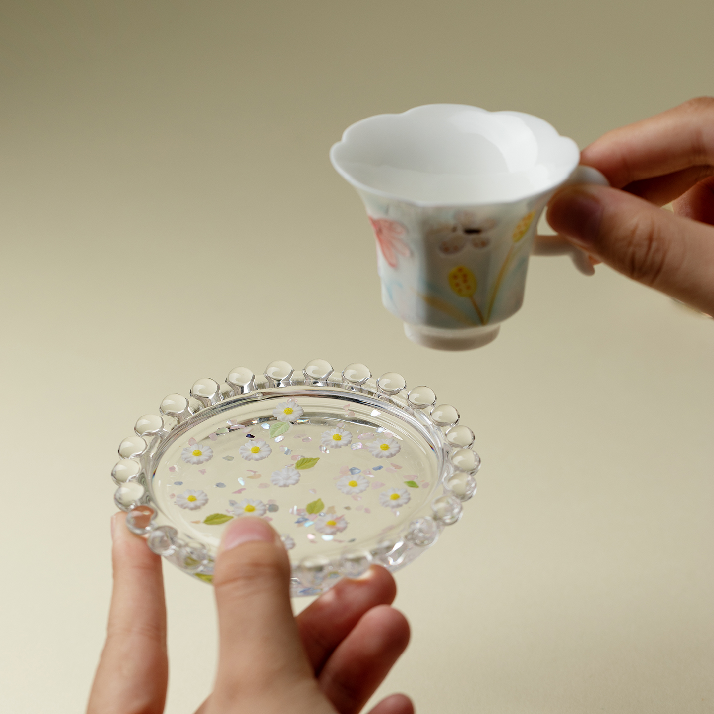 里作 手工diy蝴蝶玻璃茶杯垫高颜值功夫茶具隔热茶杯托茶道配件