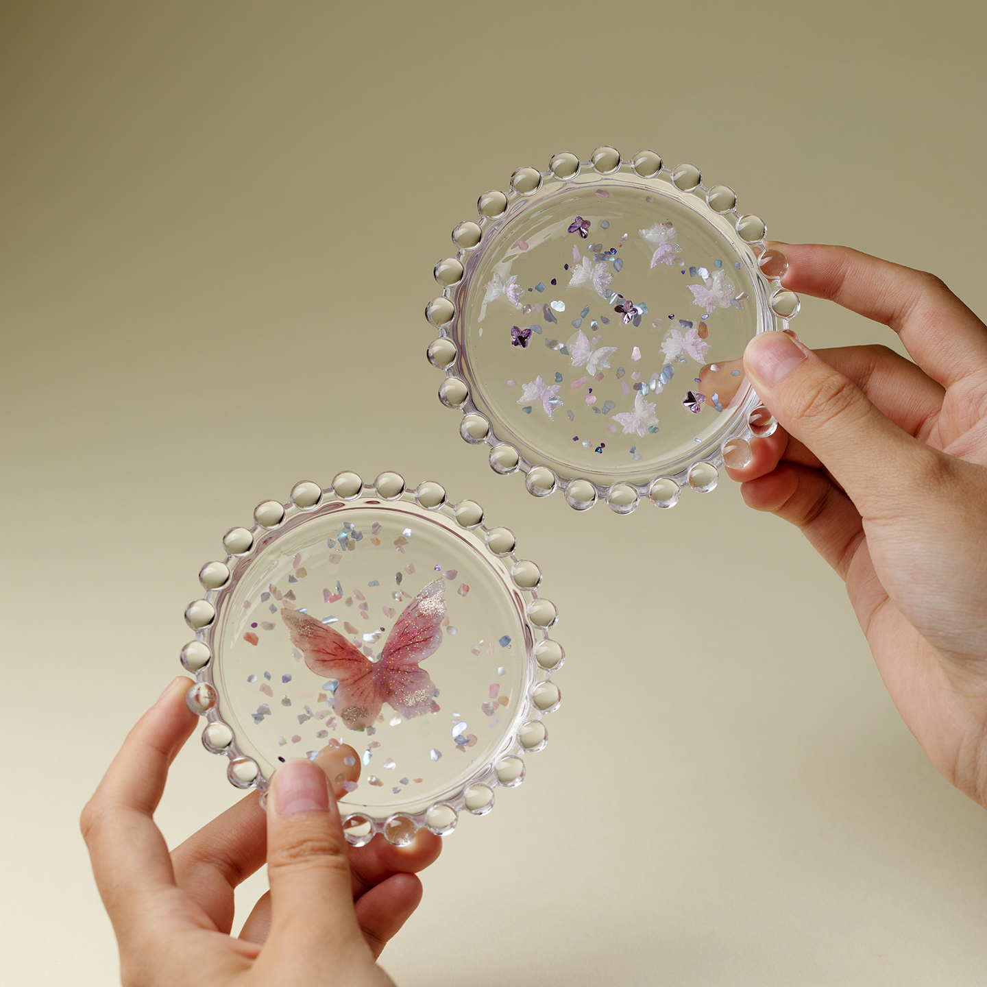 里作手工diy蝴蝶玻璃茶杯垫