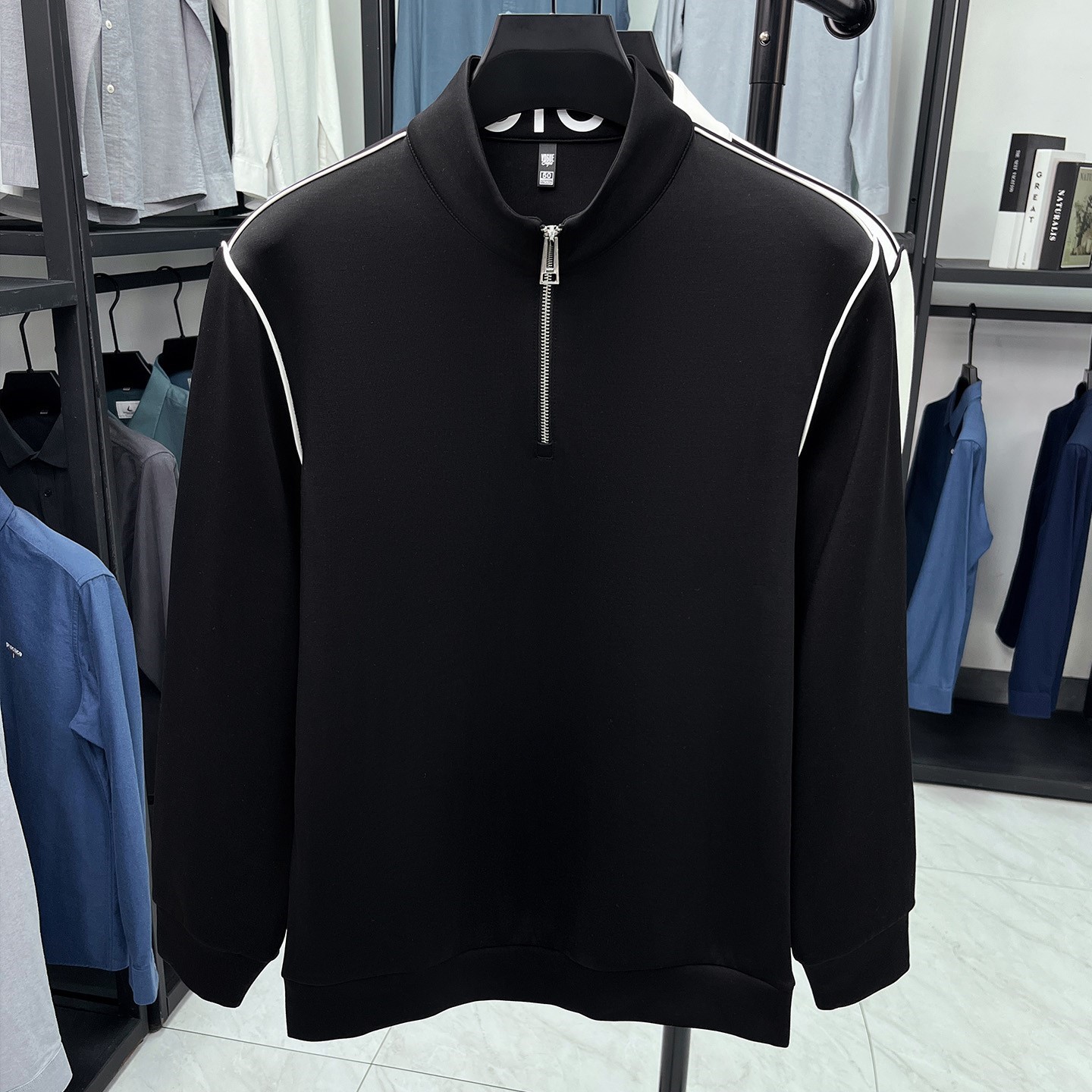 秋季新款莫代尔长袖t恤男半高拉链立领白色卫衣中年爸爸秋装上衣