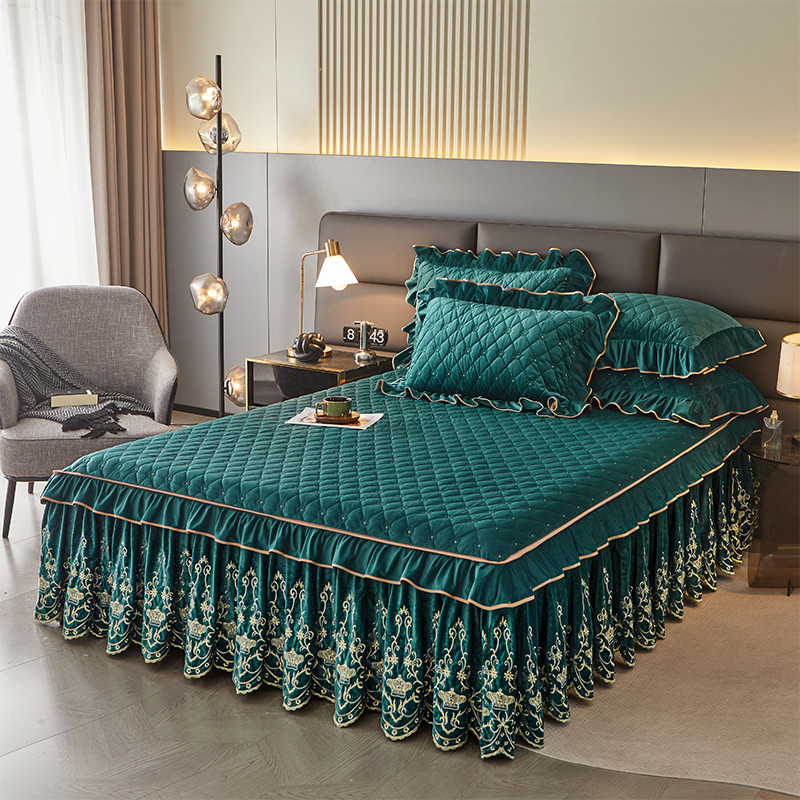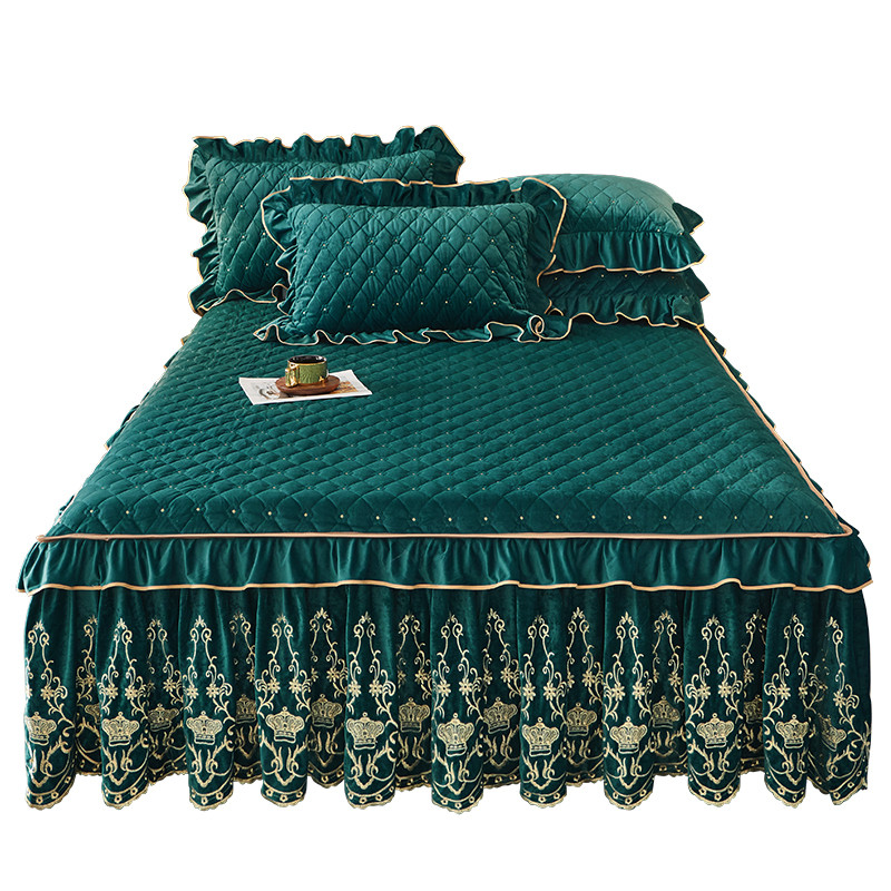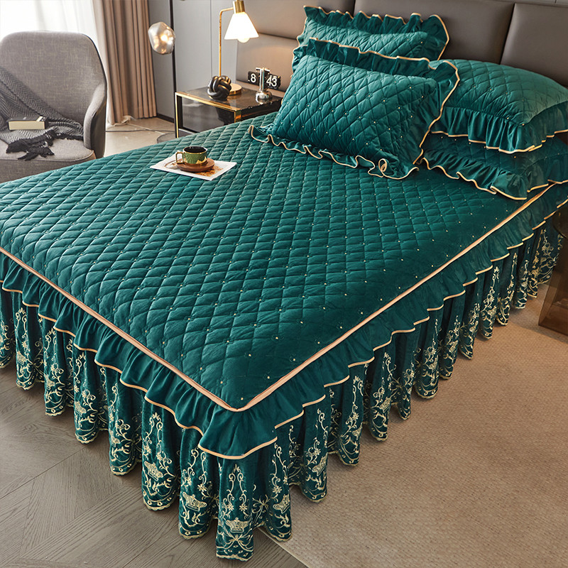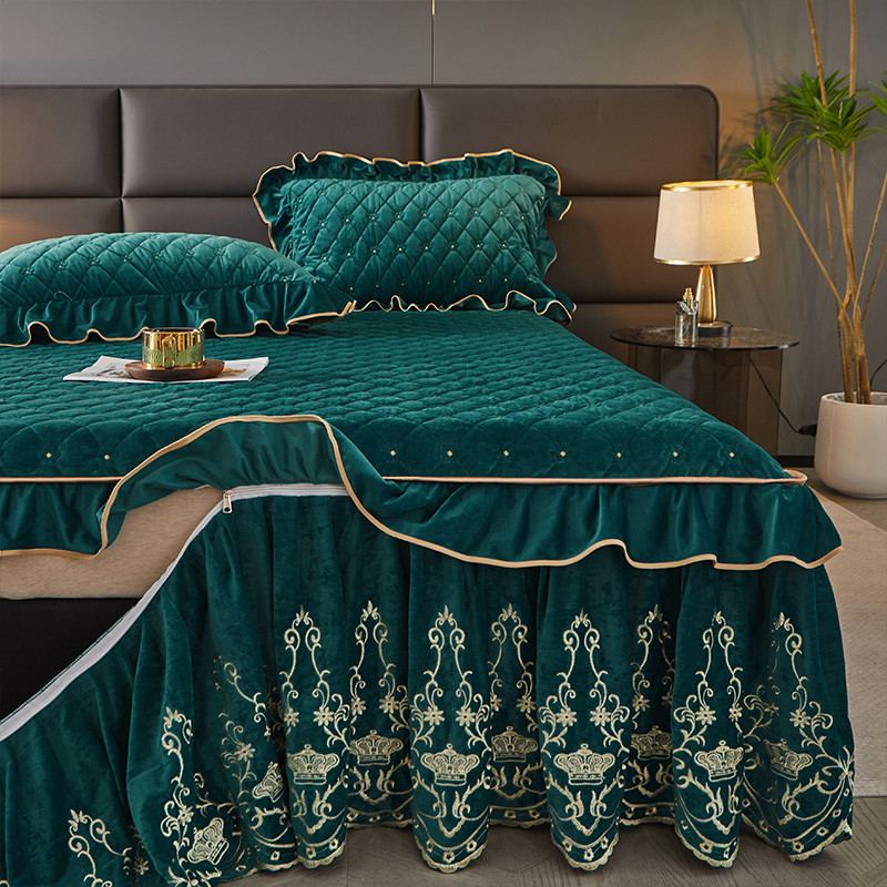 拉链可拆洗欧式宝宝绒加厚保暖床裙三件套单件夹棉床罩冬季