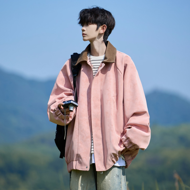 美式复古麂皮绒大码外套男2025新款春秋冬季宽松休闲男生翻领夹克