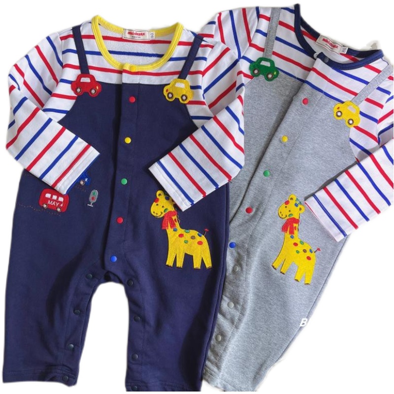 春秋款日系童装男童纯棉长袖假两件哈衣爬服女宝宝儿童连体服
