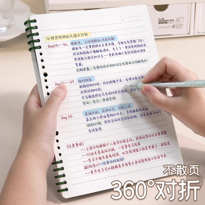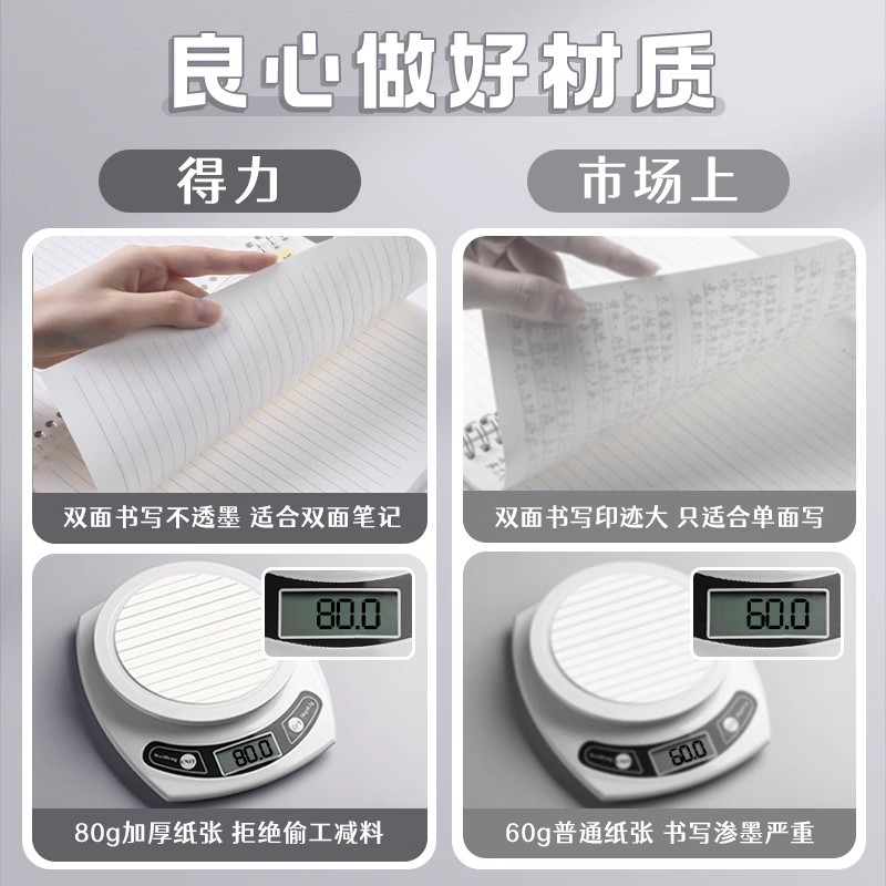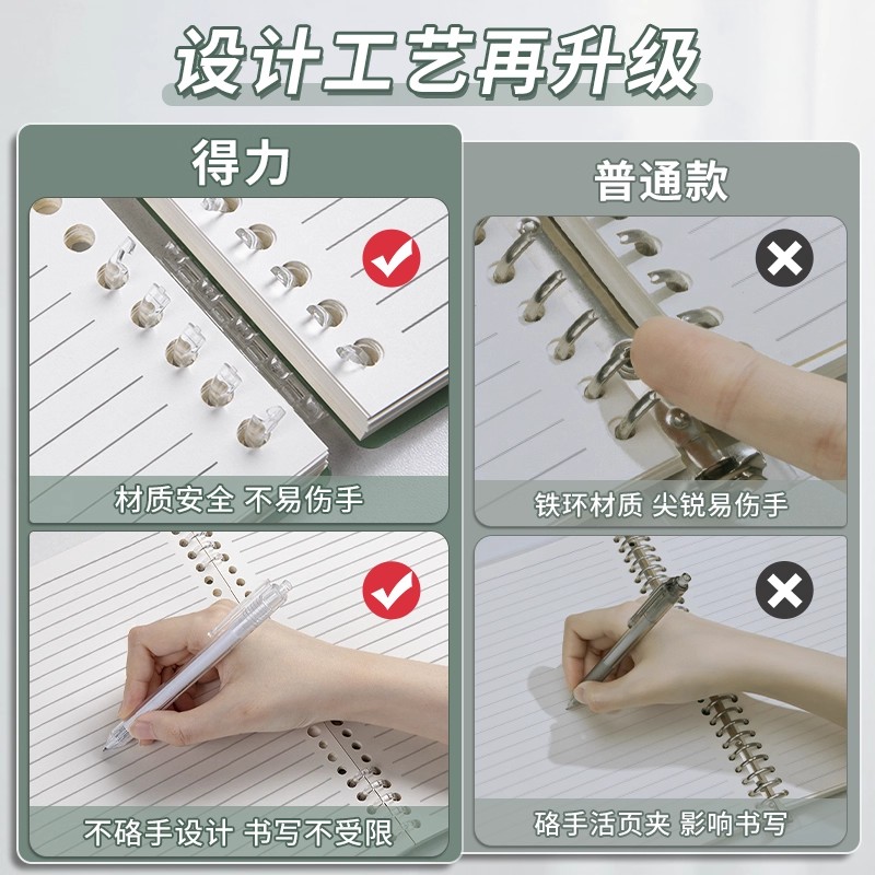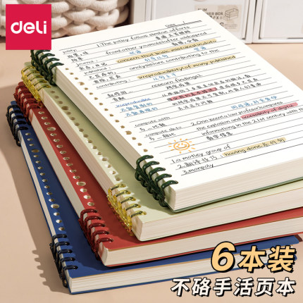 得力B5不硌手活页本可拆卸线圈笔记本本子a4初中生专用记事纸a5高中生专用可拆环扣网格本大学生考研日记本子