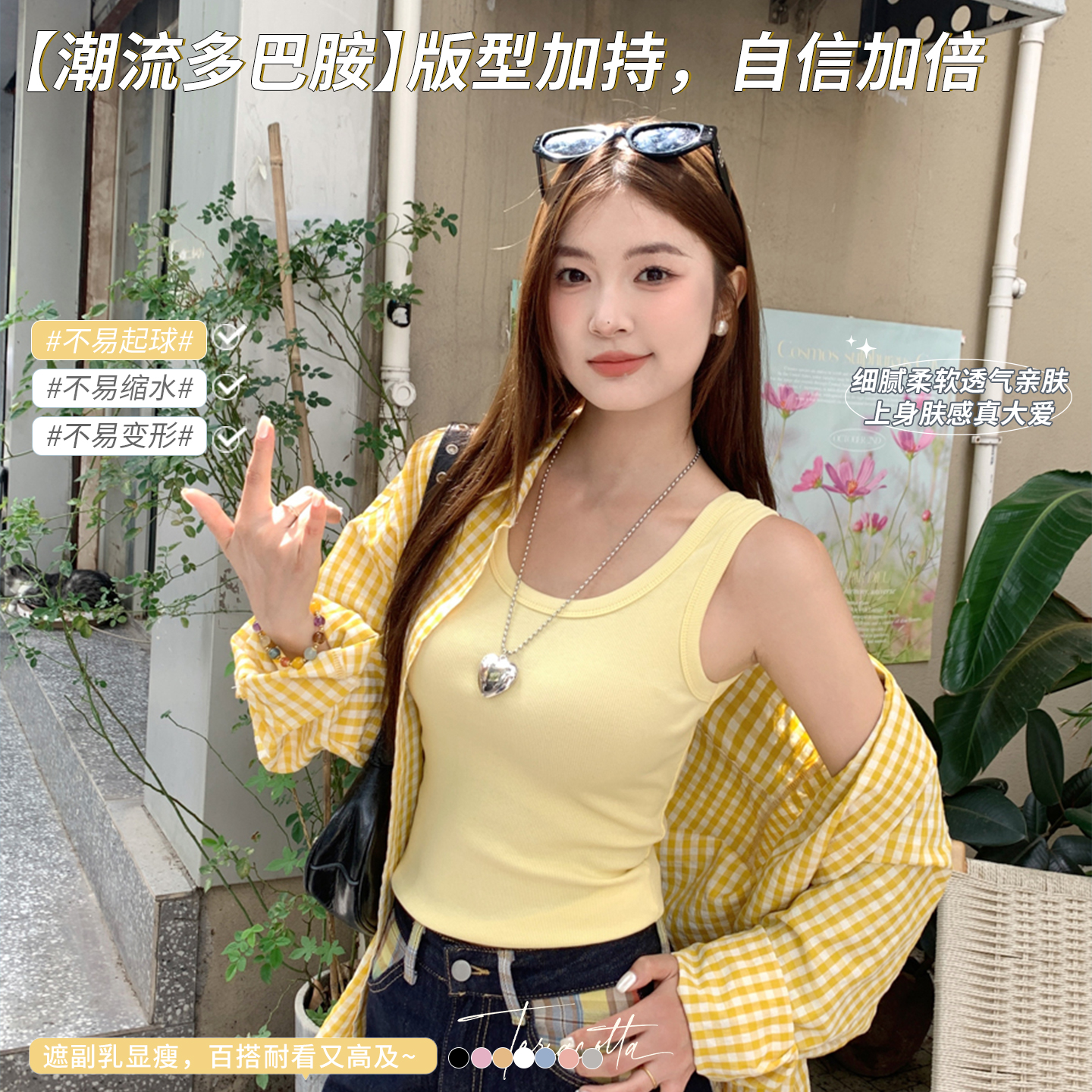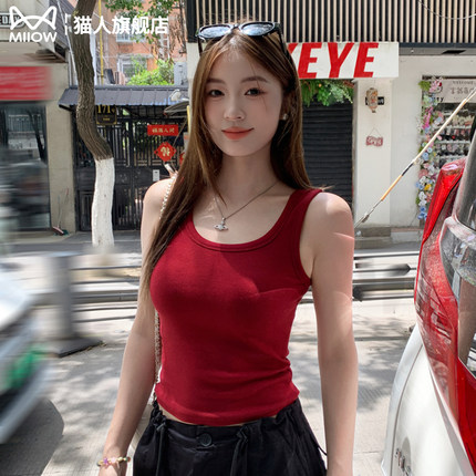 猫人纯棉吊带背心女外穿2025夏新款打底遮副乳内搭复古港风小上衣