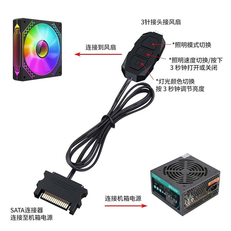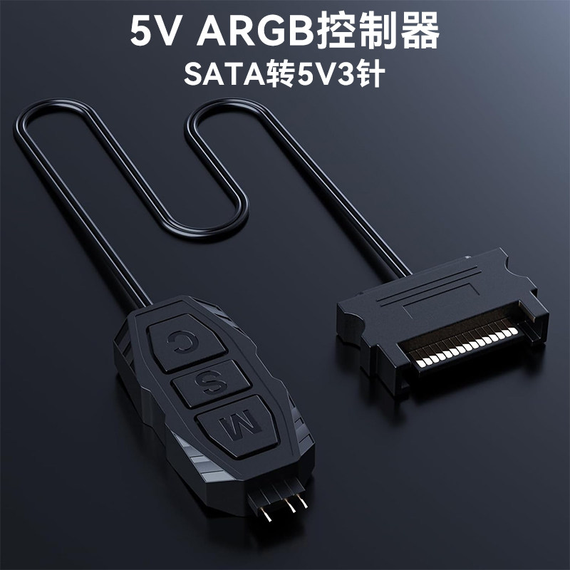 华顾5V3针ARGB控制器机箱风扇神光同步LED灯带遥控器5V3pin转SATA