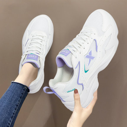 特步女鞋休闲鞋秋冬新款轻便透气复古老爹鞋官方正品网面运动鞋女