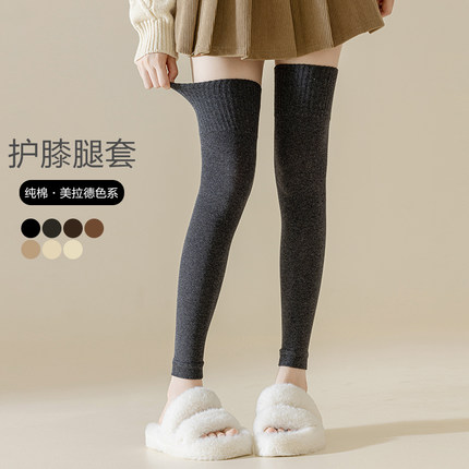 护腿护膝袜套过膝袜子女长筒高筒加长款防寒纯棉春秋冬季厚款黑灰