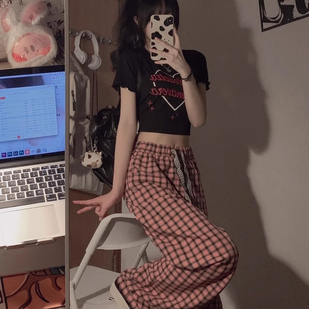 格子阔腿裤子女夏季2025新款薄款