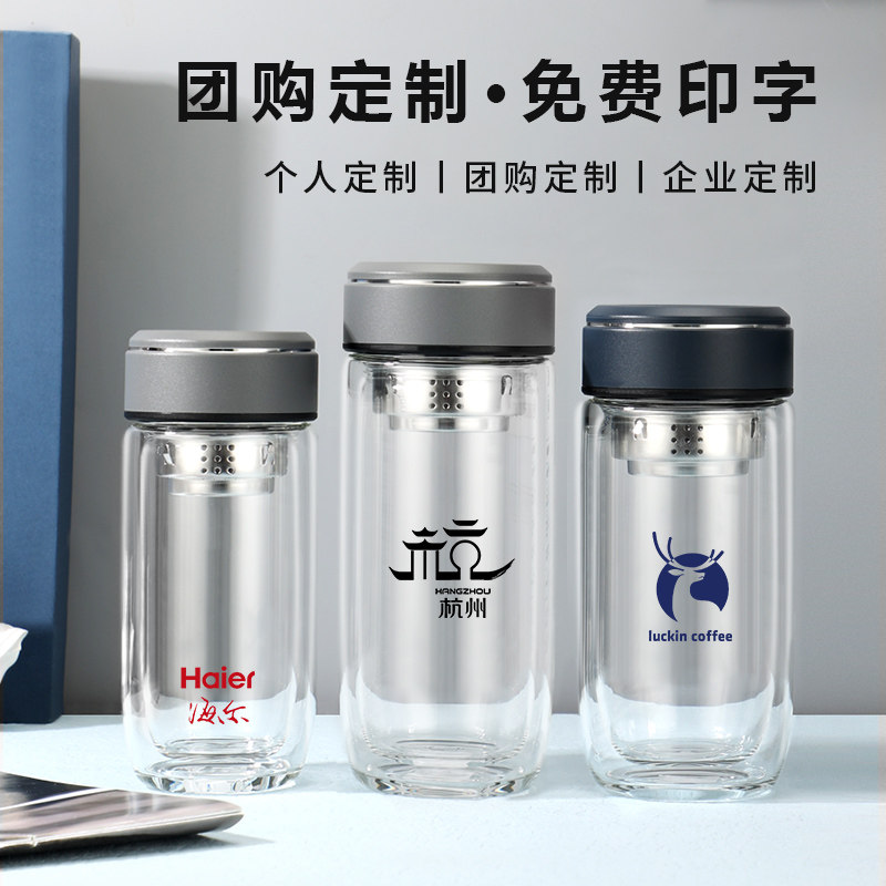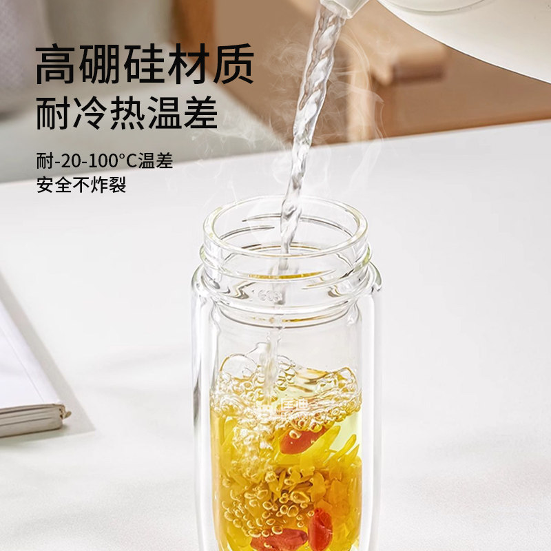 匡迪双层玻璃杯大容量茶水分离鹅蛋杯男女家用泡茶杯商务水杯定制