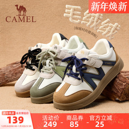 骆驼运动鞋女款2025秋冬季男女童休闲鞋儿童加绒板鞋中大童跑步鞋
