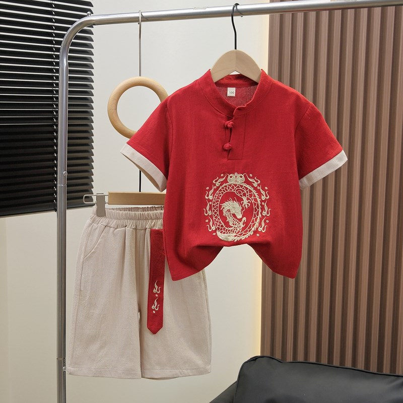 男童国风汉服短袖夏装套装2024夏季新款儿童洋气男宝帅气古风唐装