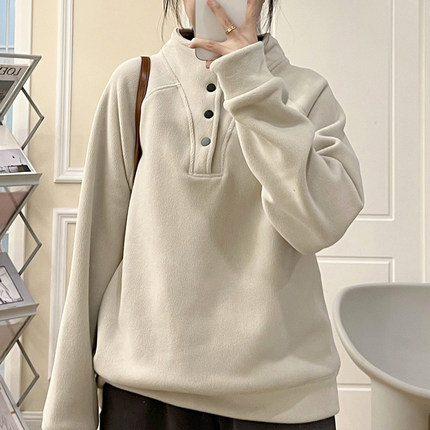 冬季哺乳衣喂奶上衣奥粒绒半高领按扣百搭宽松休闲插肩袖打底卫衣