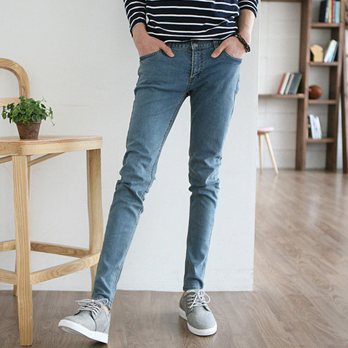 复古做旧蓝色新韩版男装季男士牛仔小脚裤弹力修身款长裤铅笔裤潮