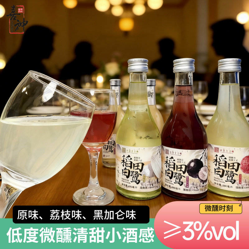 喜神果味米酒3°微醺女生聚会荔枝味黑加仑味原味果酒低度糯米酒