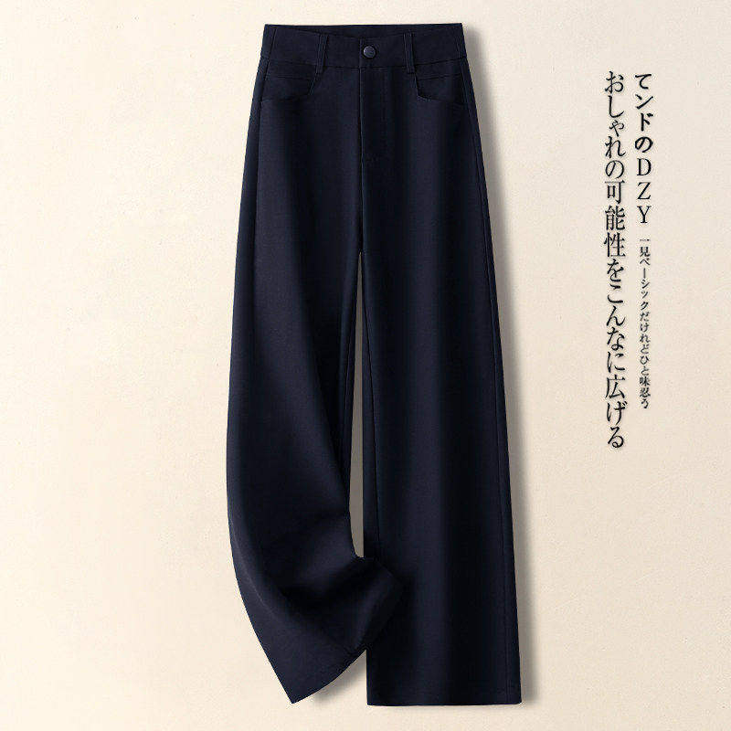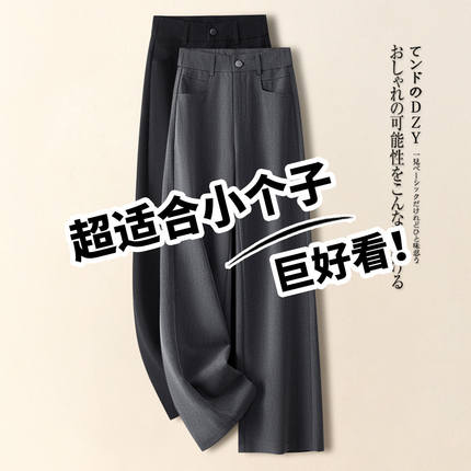 拉夏贝尔高腰灰色阔腿裤女春秋季2026新款窄版直筒裤九分裤西装裤