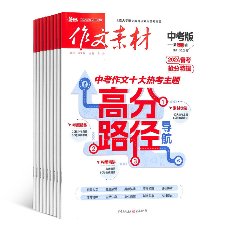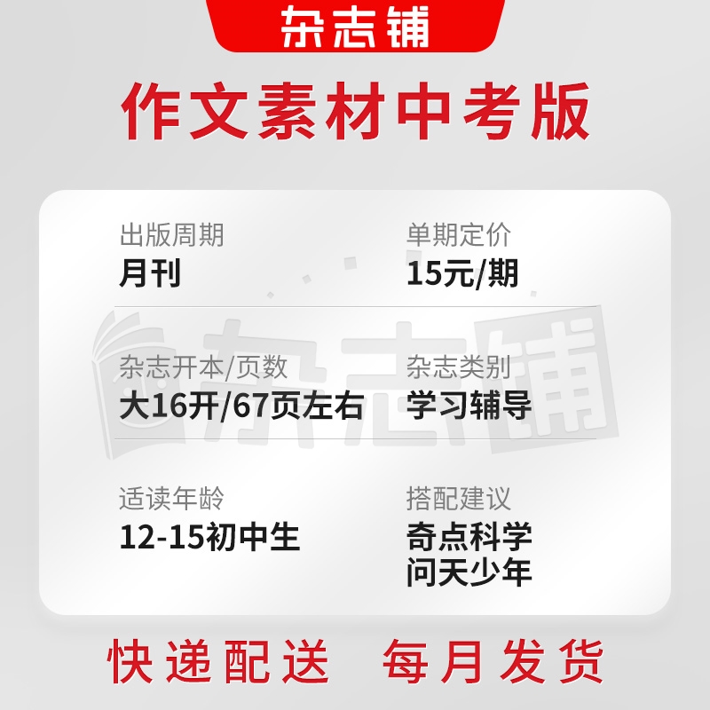 作文素材中考版杂志 2026年1月起订 1年共12期 杂志铺 全年订阅 初中生语文作文写作提升 中考满分作文指南学习辅导课外阅读期刊