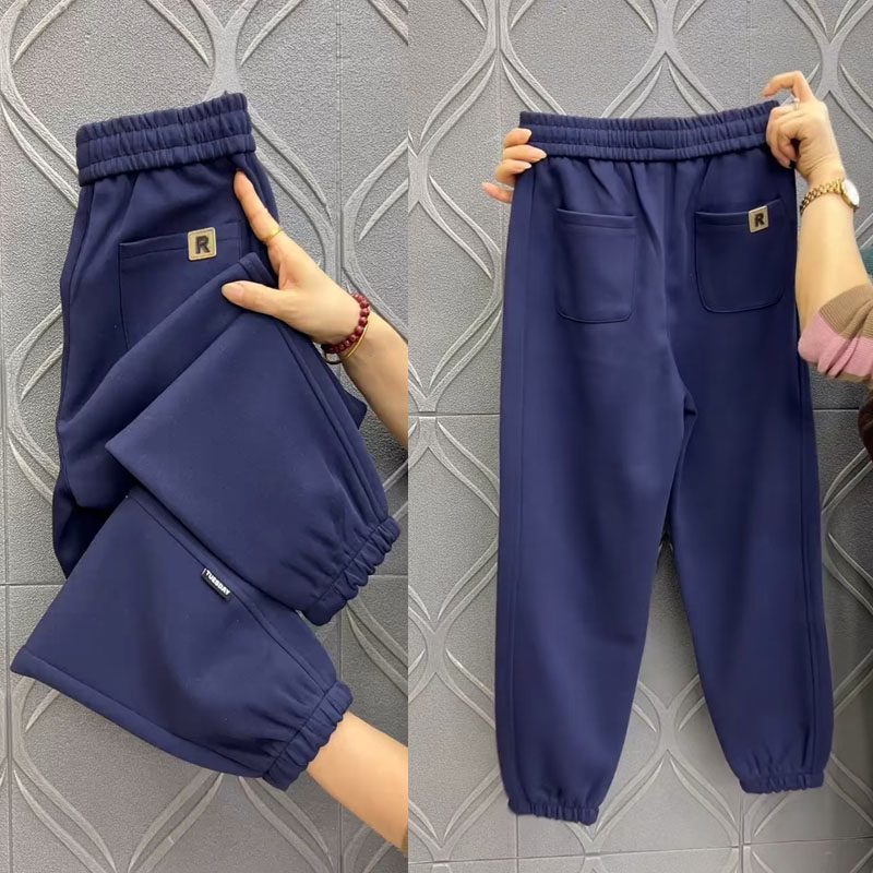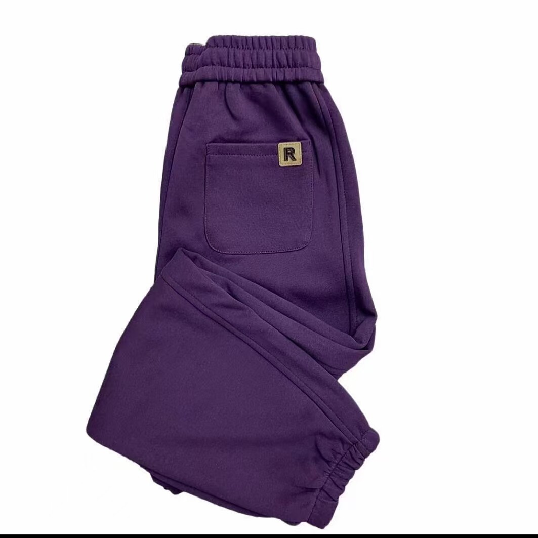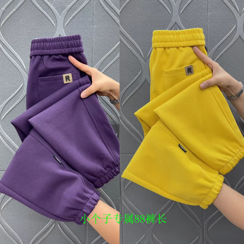 春季新款小个子裤子女宽松高腰紫色哈伦裤女百搭显瘦88裤长休闲裤