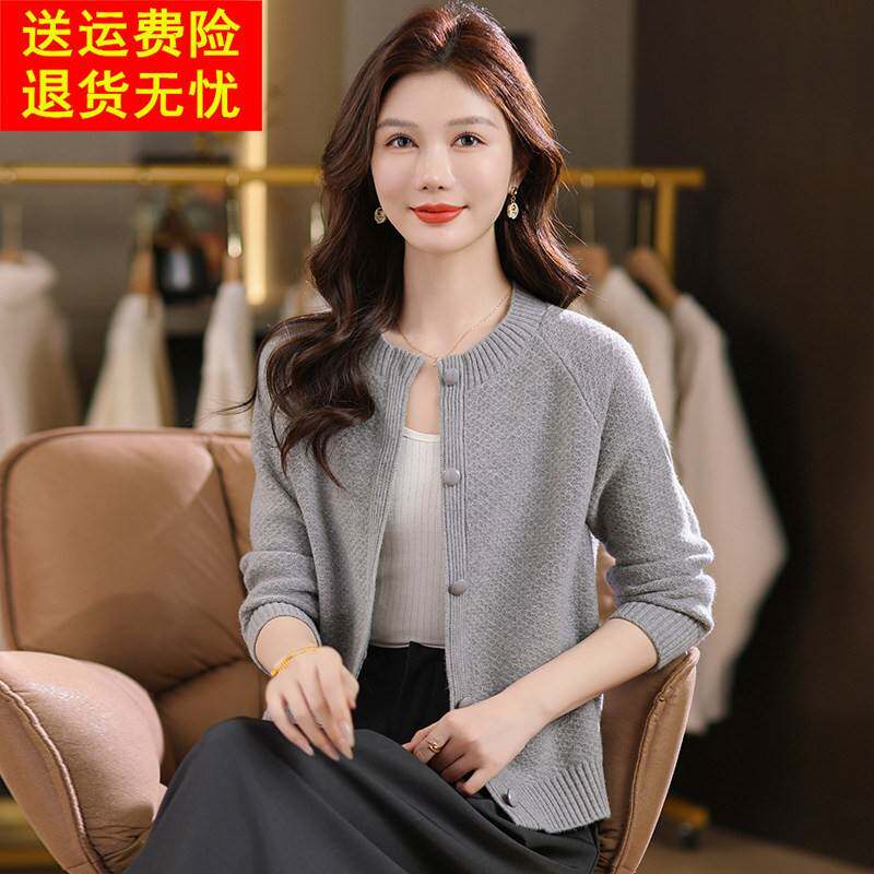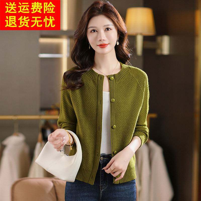 鄂尔多斯市羊毛衫短外套女羊绒毛衣秋冬新款上衣外搭圆领针织开衫